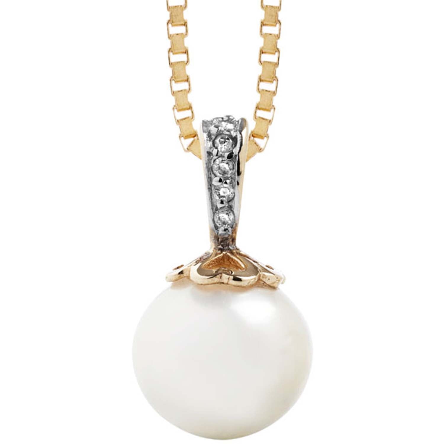 Aveny COLLECTION - Vedhæng m. ferskvandsperle/blomst/0,05 ct. - 14 kt. guld