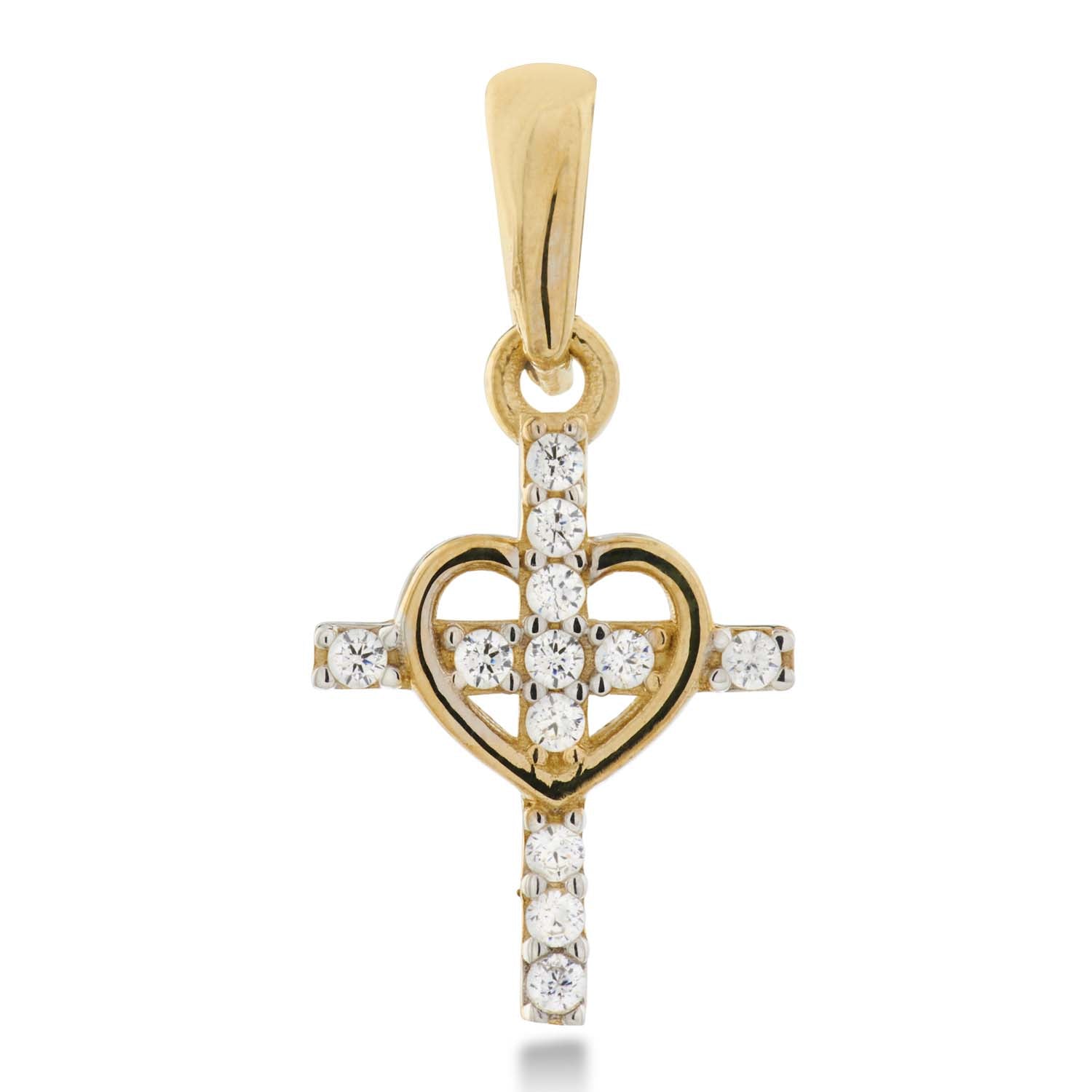 Aveny COLLECTION - Vedhæng m. kors, hjerte/zirkonia - 8 kt. guld