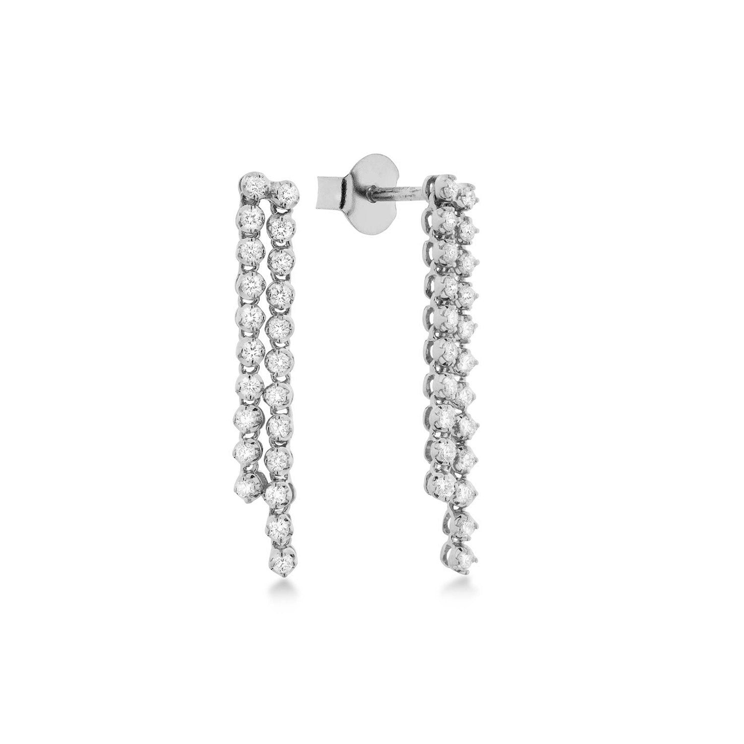 Disse øreringe er skabt til at imponere med deres elegante og tidløse design. Hvidguldet giver en kølig, sølvfarvet glans, der fremhæver de funklende brillianter. Den delikate kæde af diamanter skaber en smuk bevægelse, der tilføjer liv til ethvert outfit.