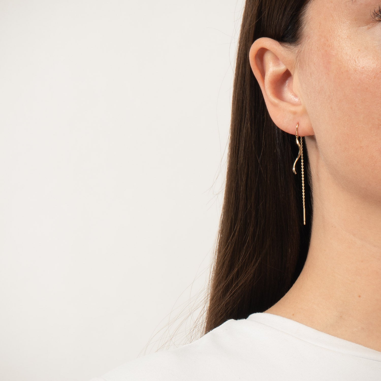Aveny NINE K - Øreringe med kæde i 9 kt. guld