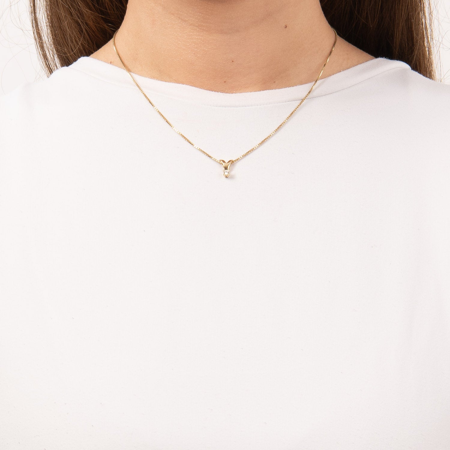 Vedhængets gyldne farve harmonerer perfekt med diamantens klare glans, hvilket skaber en elegant kontrast. Den glatte overflade af guldet føles luksuriøs mod huden, mens diamantens præcise indfatning fremhæver dens naturlige skønhed. Dette vedhæng er ikke blot et smykke, men en erklæring om stil og elegance.