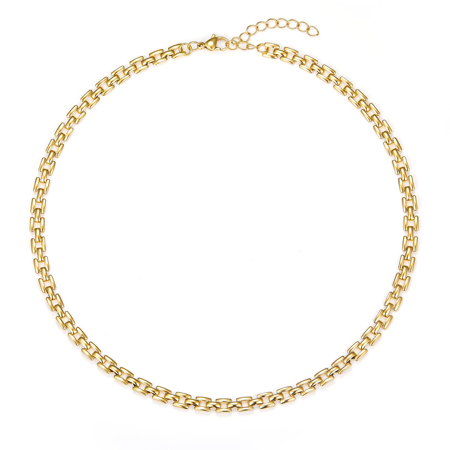 Halskædens gyldne farve fremhæver dens raffinerede design, mens de små, sammenkoblede led giver en følelse af lethed og bevægelse. Den glatte overflade reflekterer lyset smukt, hvilket tilføjer en subtil glans til dit look. Perfekt til både hverdag og særlige lejligheder, er Amizade halskæden en alsidig tilføjelse til din smykkesamling.