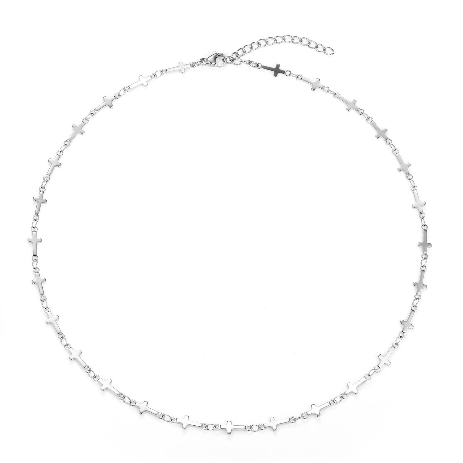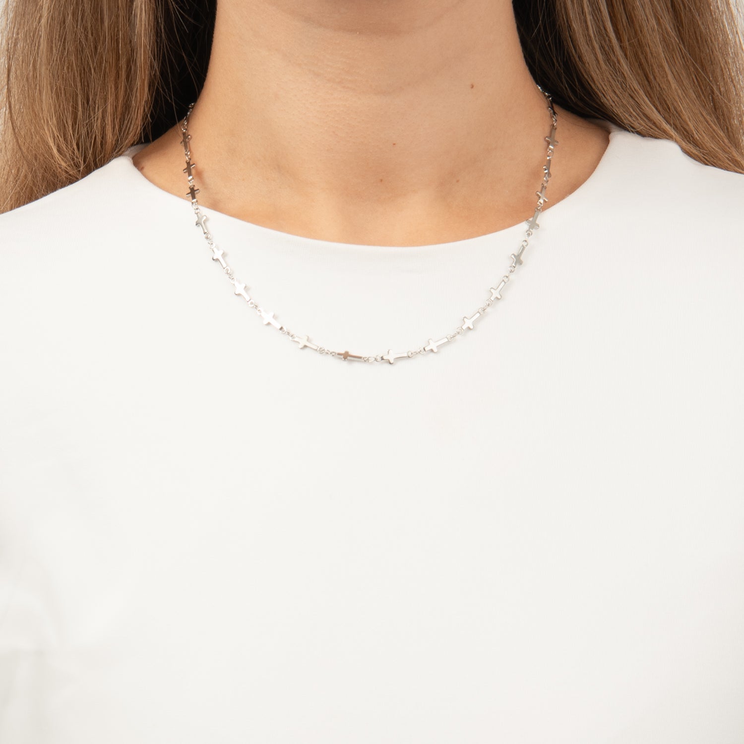 Halskæden er udsmykket med små kors, der skaber en delikat og sofistikeret æstetik. Den glatte overflade reflekterer lyset smukt, hvilket giver et elegant udtryk. Det enkle, men alligevel iøjnefaldende design gør den ideel til både hverdag og festlige begivenheder.