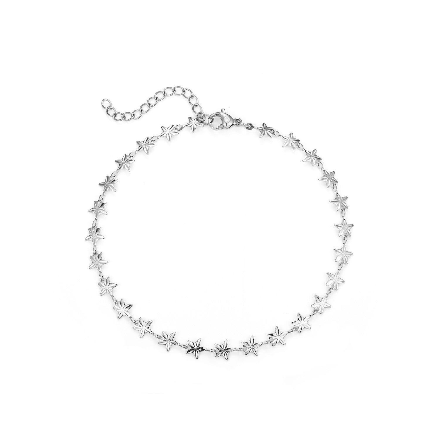 Baía Jewellerys Raio Estrela ankelkæde er en udsøgt kombination af delikate stjerner, der elegant omfavner din ankel. Den skinnende overflade i rustfrit stål giver et tidløst look, der passer til enhver lejlighed. Kædens lette og luftige design gør den behagelig at bære hele dagen. Kædens mønster på pladerne er identisk på for- og bagsiden.