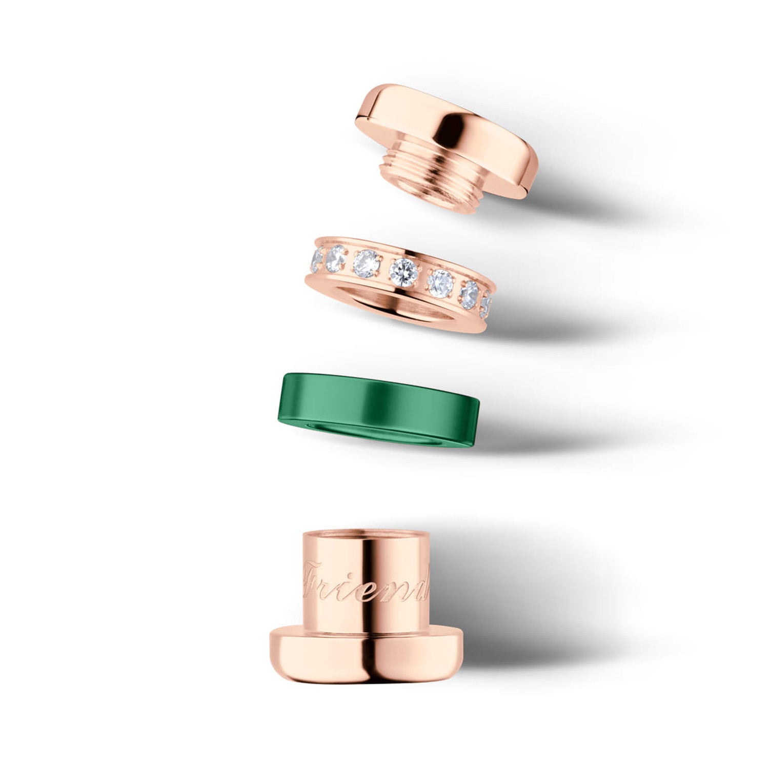 Charmsens glatte overflade og de skinnende detaljer fremhæver dens sofistikerede udtryk. Den grønne farve tilføjer en friskhed, mens den rosa PVD-belægning giver en varm og indbydende glød. Dette smykke er ikke kun en visuel fornøjelse, men også en symbolsk gestus, der kan bæres med stolthed.
