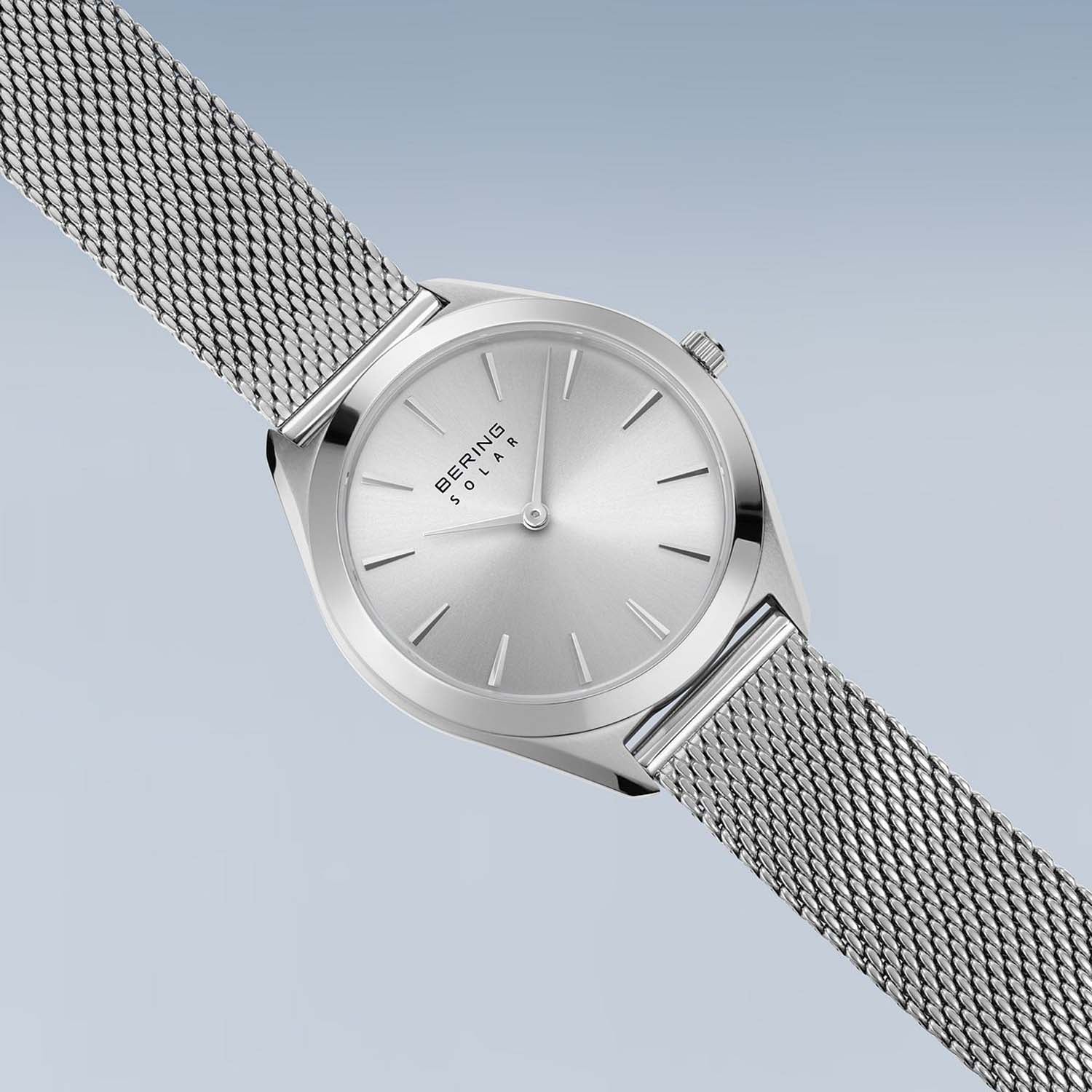 Fordele ved BERING Solar ur:- Elegant design: Det slanke og stilrene design i sølvfarvet rustfrit stål passer til enhver lejlighed.