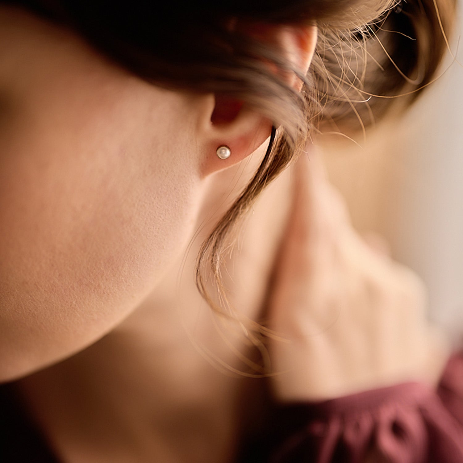 Øreringene har en subtil glans, der fremhæver den hvide perleskønhed. Den gyldne bezel indrammer perlen og skaber en harmonisk balance mellem farverne. Med en størrelse på 5 mm er de diskrete, men alligevel iøjnefaldende, hvilket gør dem velegnede til både hverdag og festlige lejligheder.