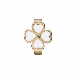 Opdag skønheden og elegance med Mother of Pearl Foursome fra Christina Design London. Dette fine charm er en hyldest til klassisk håndværk, udført i forgyldt sølv med en delikat hvid emalje, der tilfører et strejf af renhed og finesse til dit look.