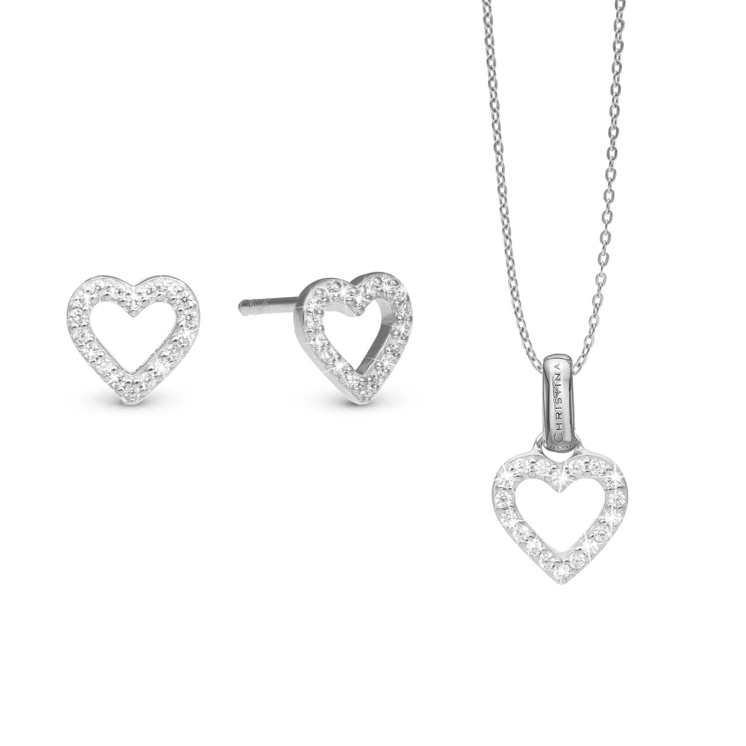 Oplev den tidløse elegance med Christina's Shimmery Heart smykkesæt i sølv. Dette sæt kombinerer delikat design med en subtil glans, der fremhæver din naturlige skønhed.