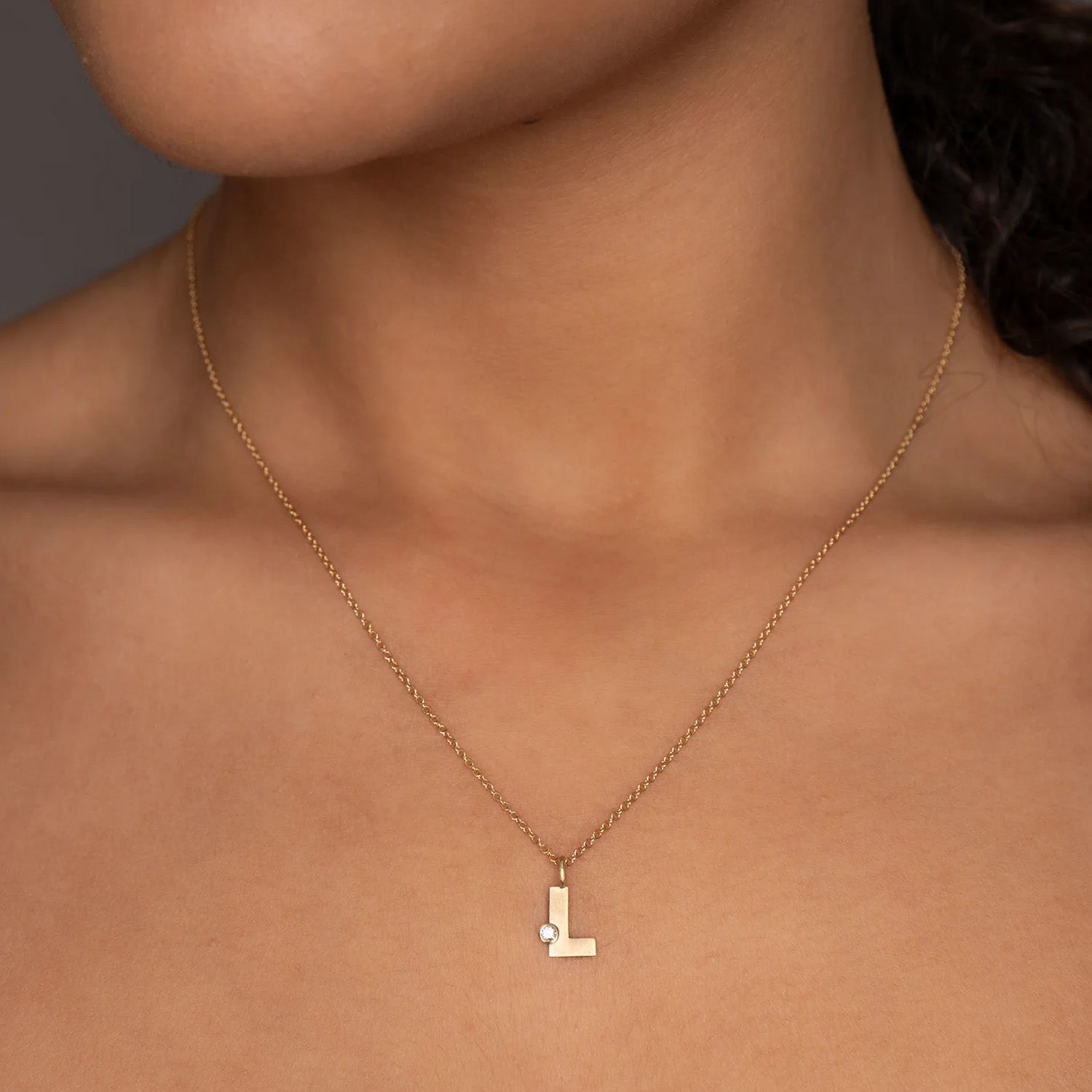 Dulong Fine Jewelry - Small Letter vedhæng, L/0,04 ct. F/G vs2 - 18 kt. guld