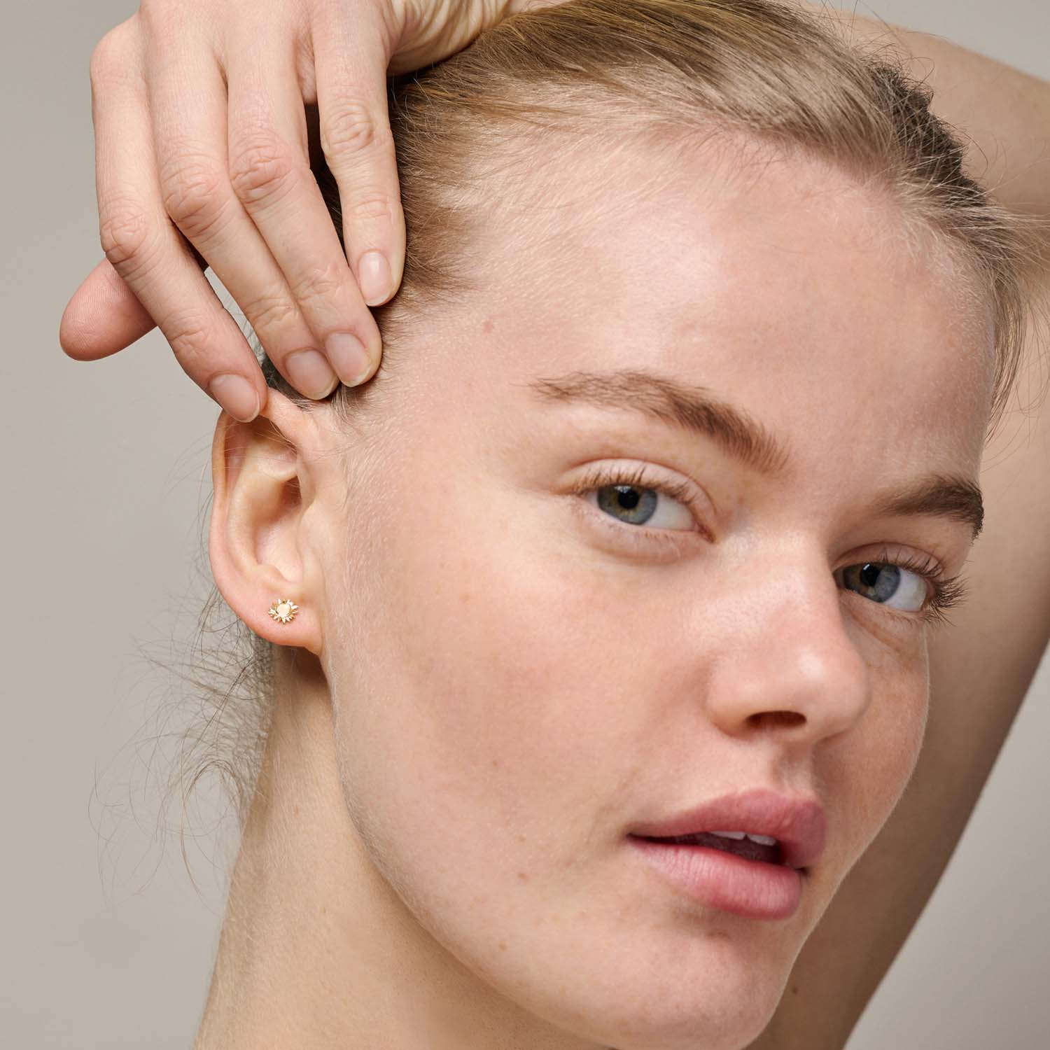 Enamel Copenhagen - Small Sunshine Daisy ørestikker, 7 mm - Forgyldt sølv