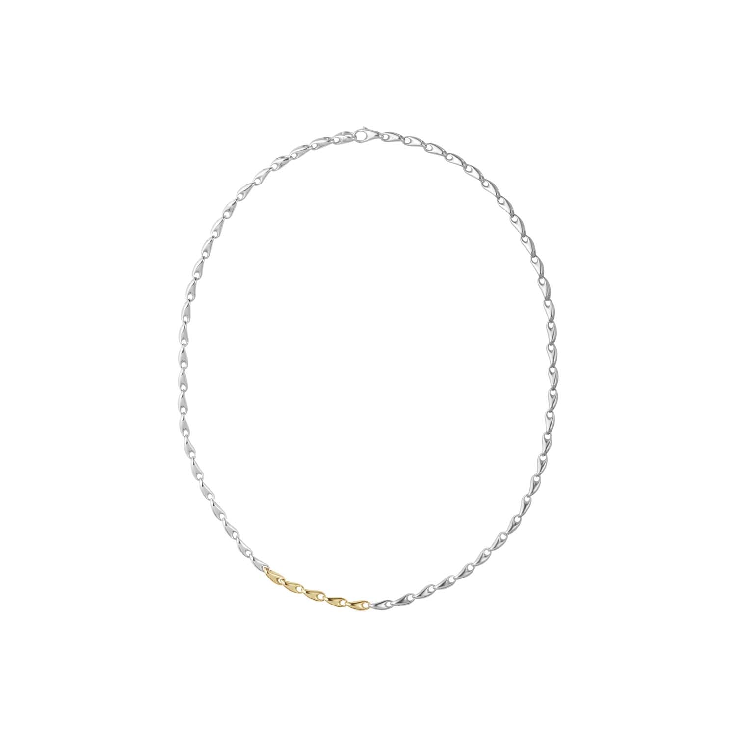 Halskæden er udført i en harmonisk kombination af guld og sølv, hvilket giver et sofistikeret udtryk. Den er ideel som gave til hende, der sætter pris på klassisk design med et moderne twist.