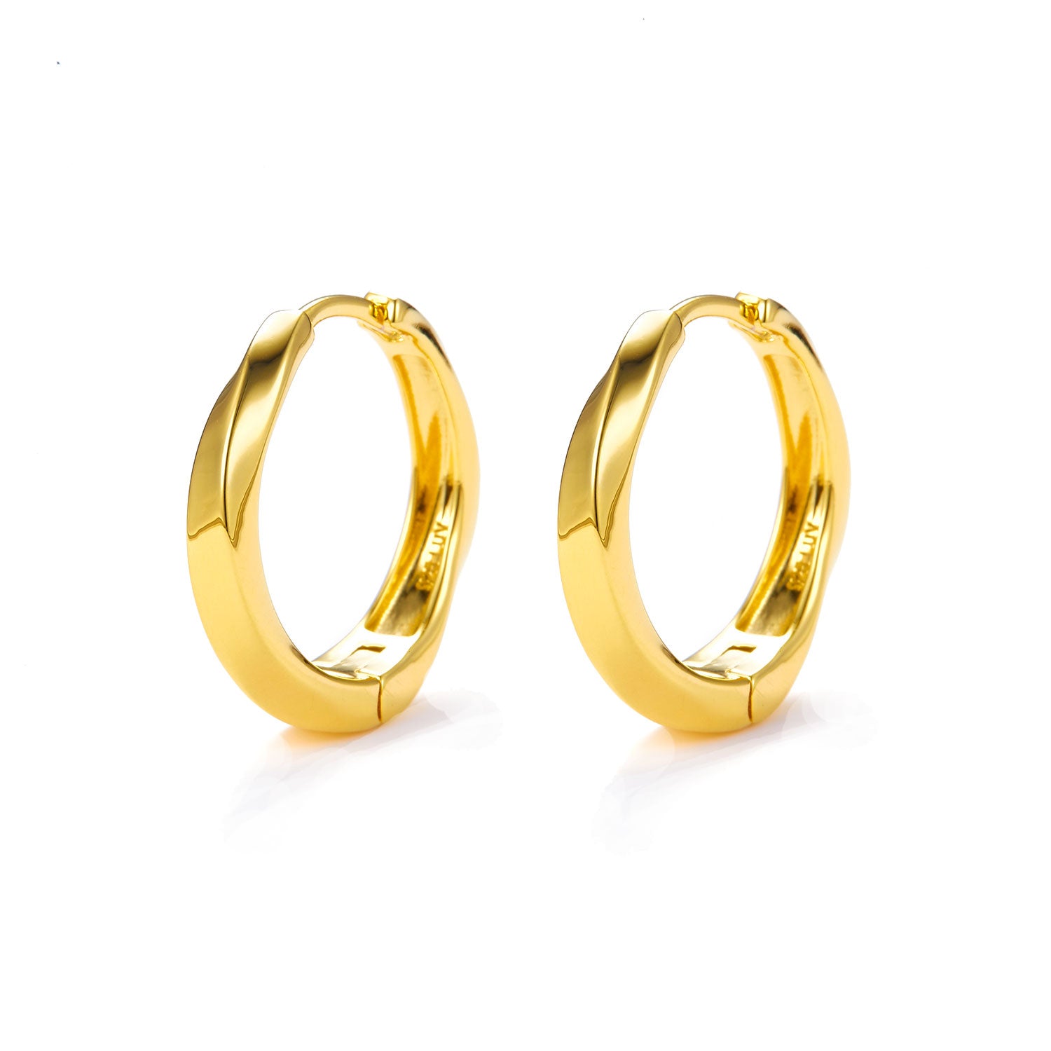 Disse øreringe er udført i en smuk forgyldt finish, der fanger lyset på en sofistikeret måde. Den glatte, polerede overflade reflekterer en varm gylden nuance, der komplementerer enhver hudtone. Øreringenes enkle, men elegante form gør dem alsidige og lette at kombinere med andre smykker.
