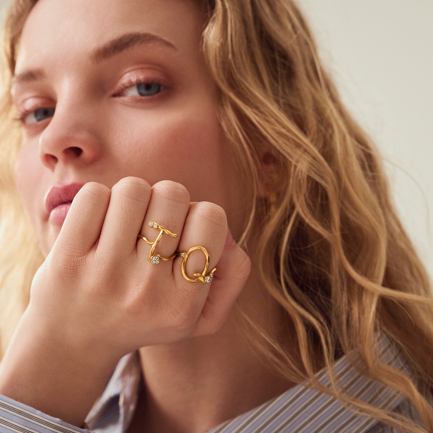 Maanesten - Alphabet ring m. zirkonia, L - Sølv
