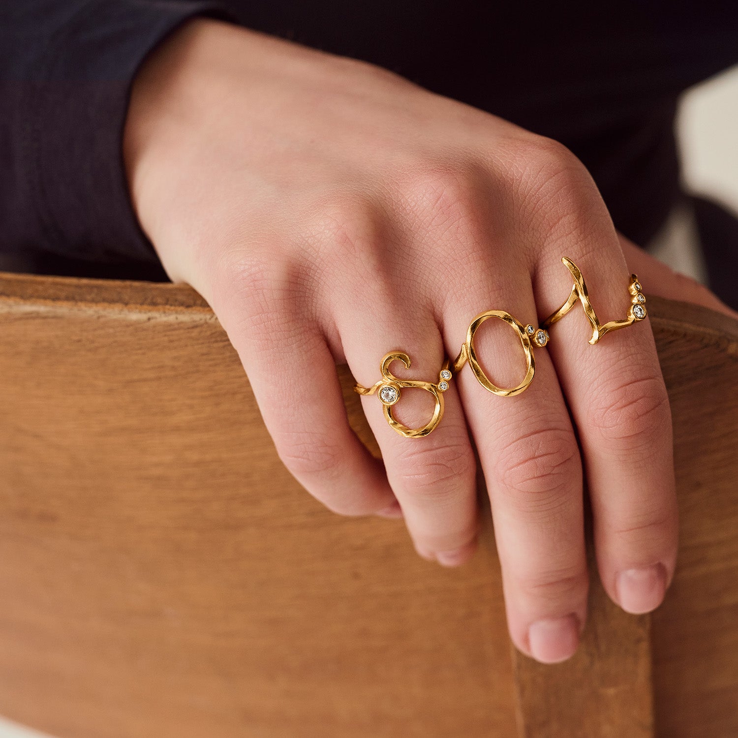 Maanesten - Alphabet ring m. zirkonia, M - Sølv