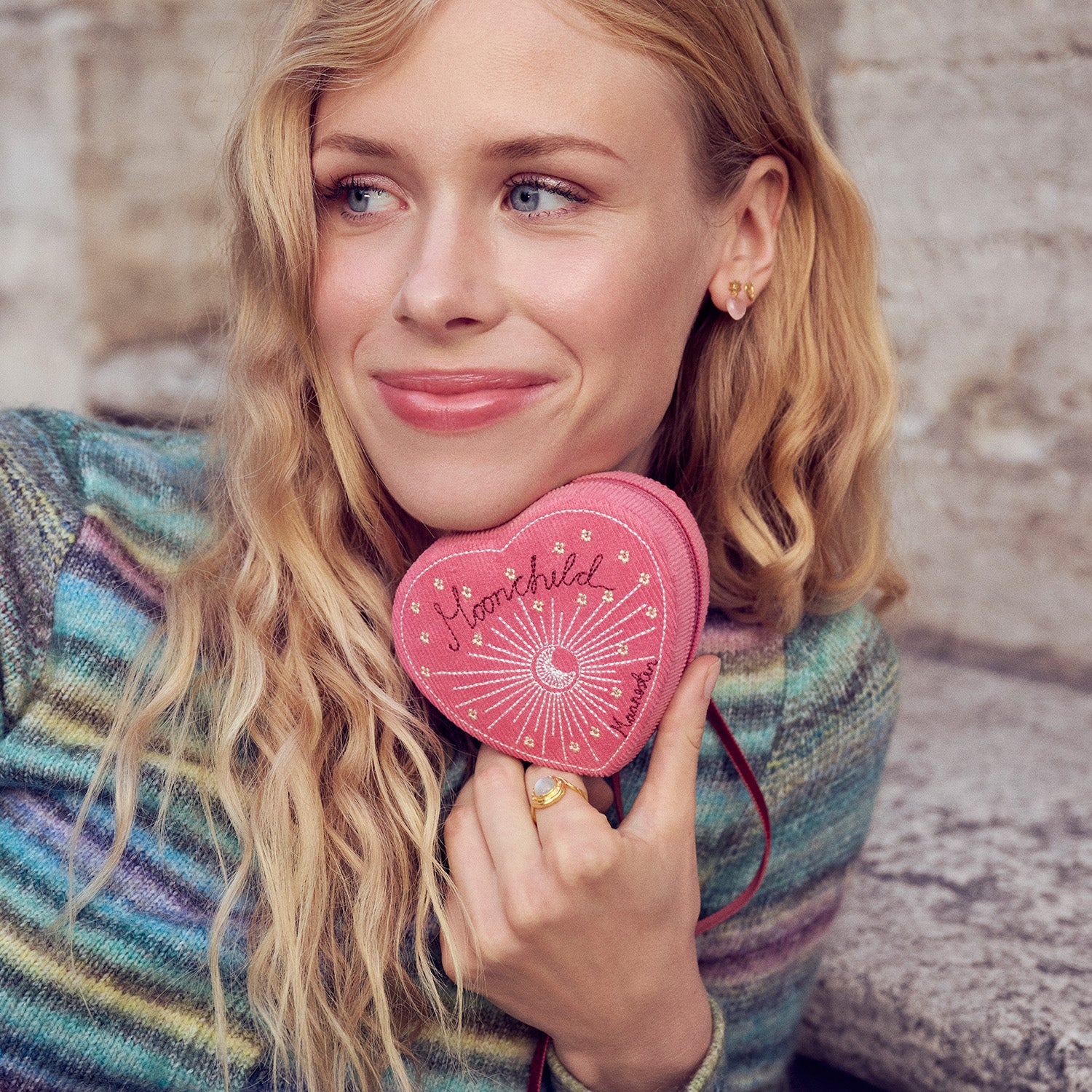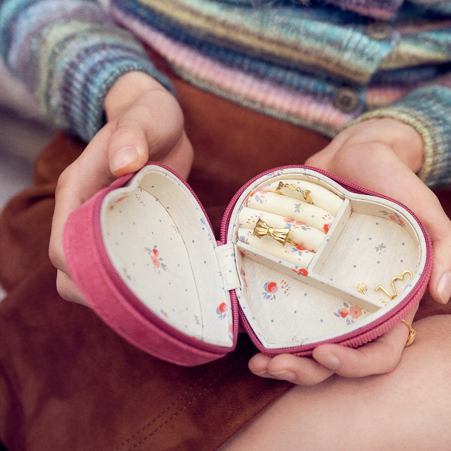 Maanesten - Heart Pink smykkeskrin - Tekstil