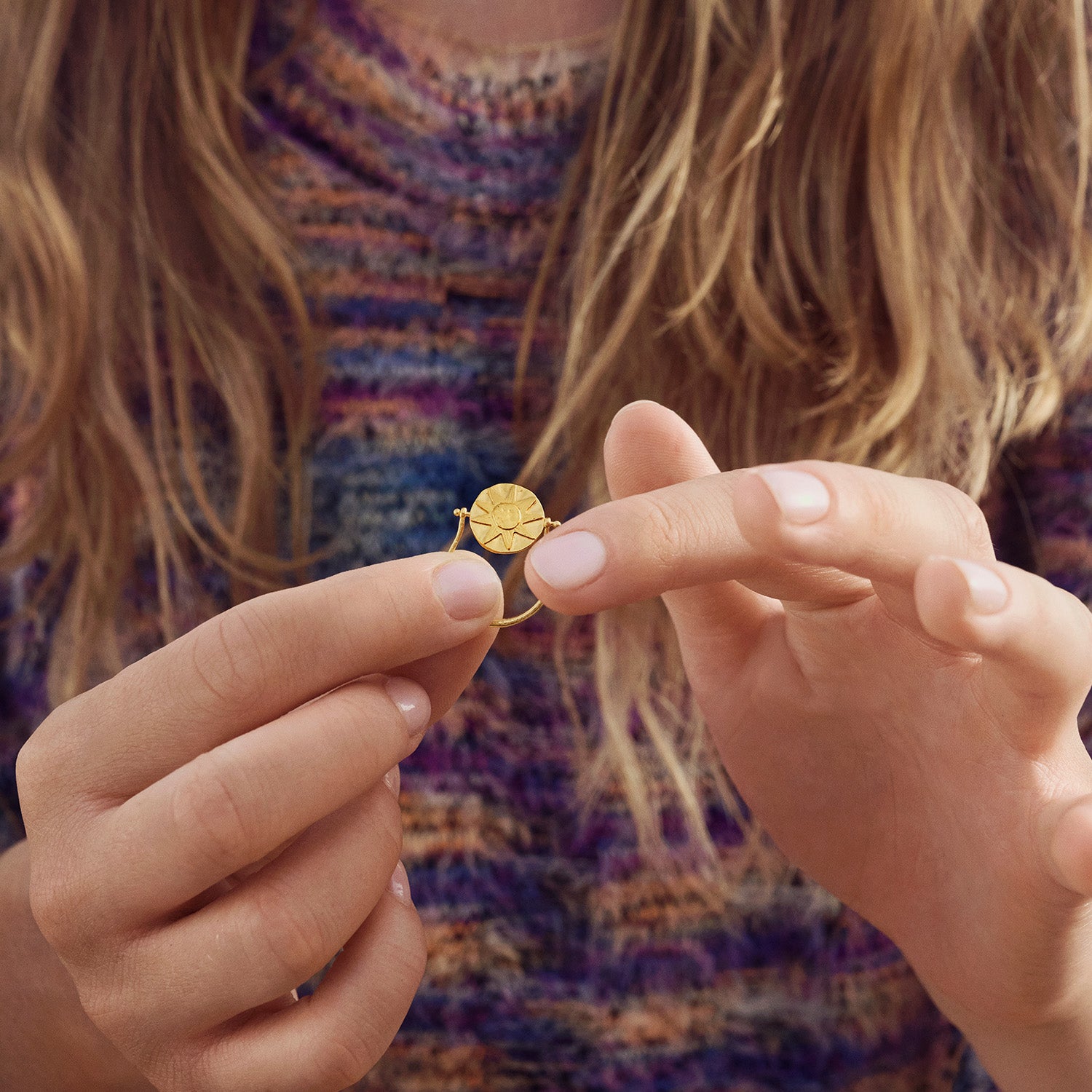 Sunna ringen er en del af Maanestens kollektion, der er kendt for at blande moderne trends med klassiske elementer. Den forgyldte finish giver ringen en luksuriøs følelse, mens det enkle design gør den til et alsidigt tilbehør, der kan bæres til enhver lejlighed. Uanset om du ønsker at forkæle dig selv eller finde den perfekte gave, er Sunna ringen et fremragende valg.