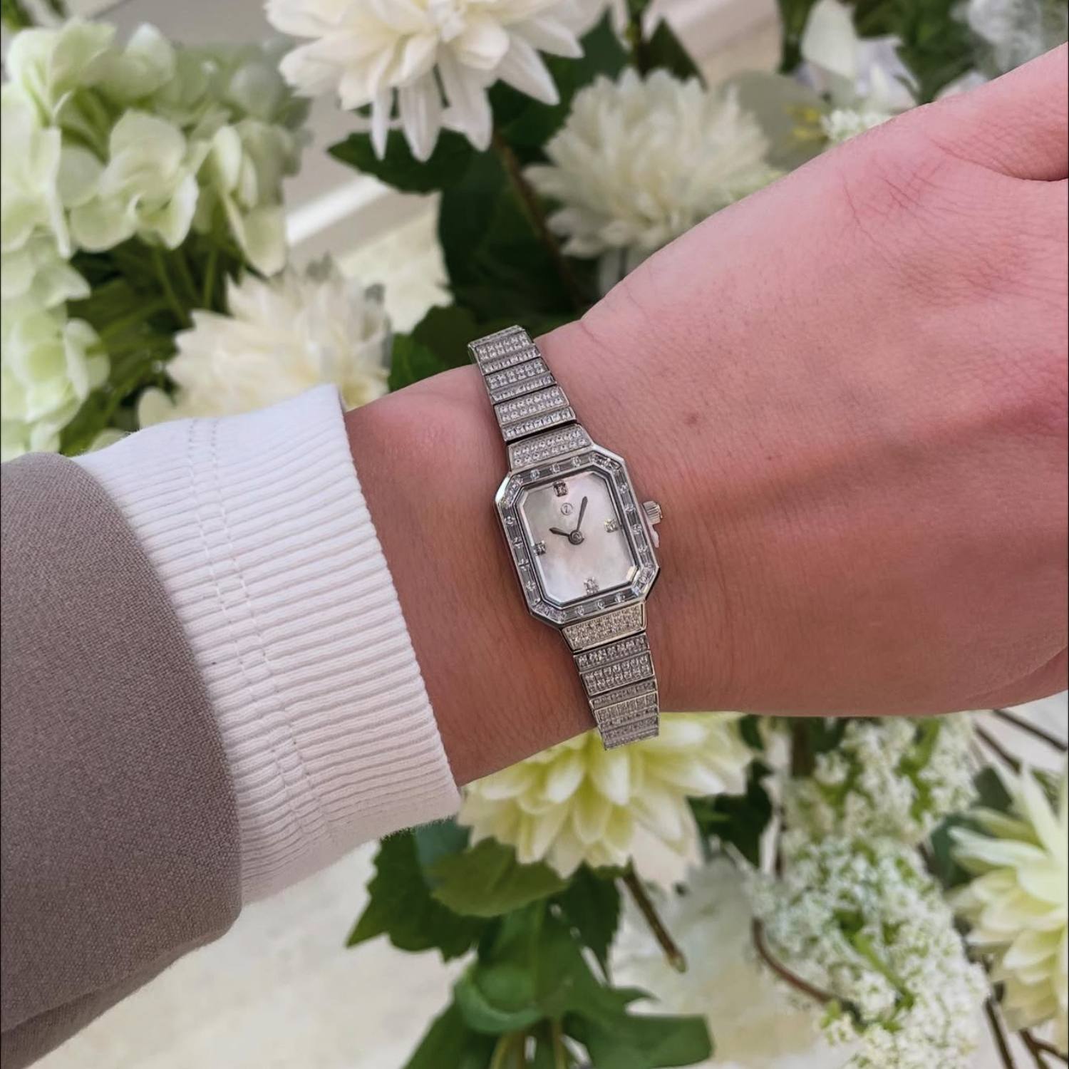 Med en urskive på 32 mm er dette ur både diskret og iøjnefaldende. De indlagte zirkonia-sten skaber en glitrende effekt, der tiltrækker opmærksomhed og fremhæver din personlige stil. Det rustfrie stål giver en glat og poleret overflade, der føles behagelig mod huden.