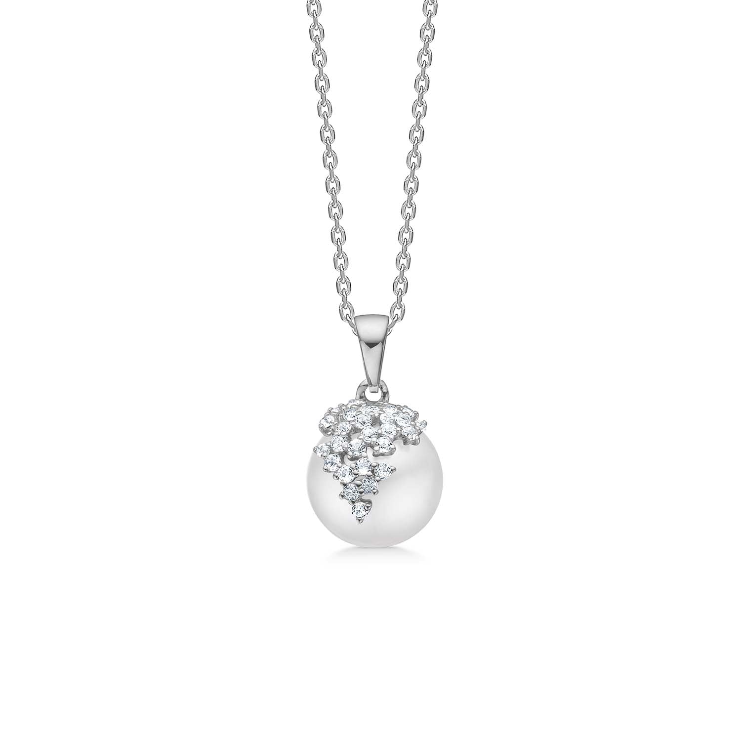 Mads.Z - Chloé halskæde med ferskvandsperler og zirkonia, 40+5 cm - Sølv