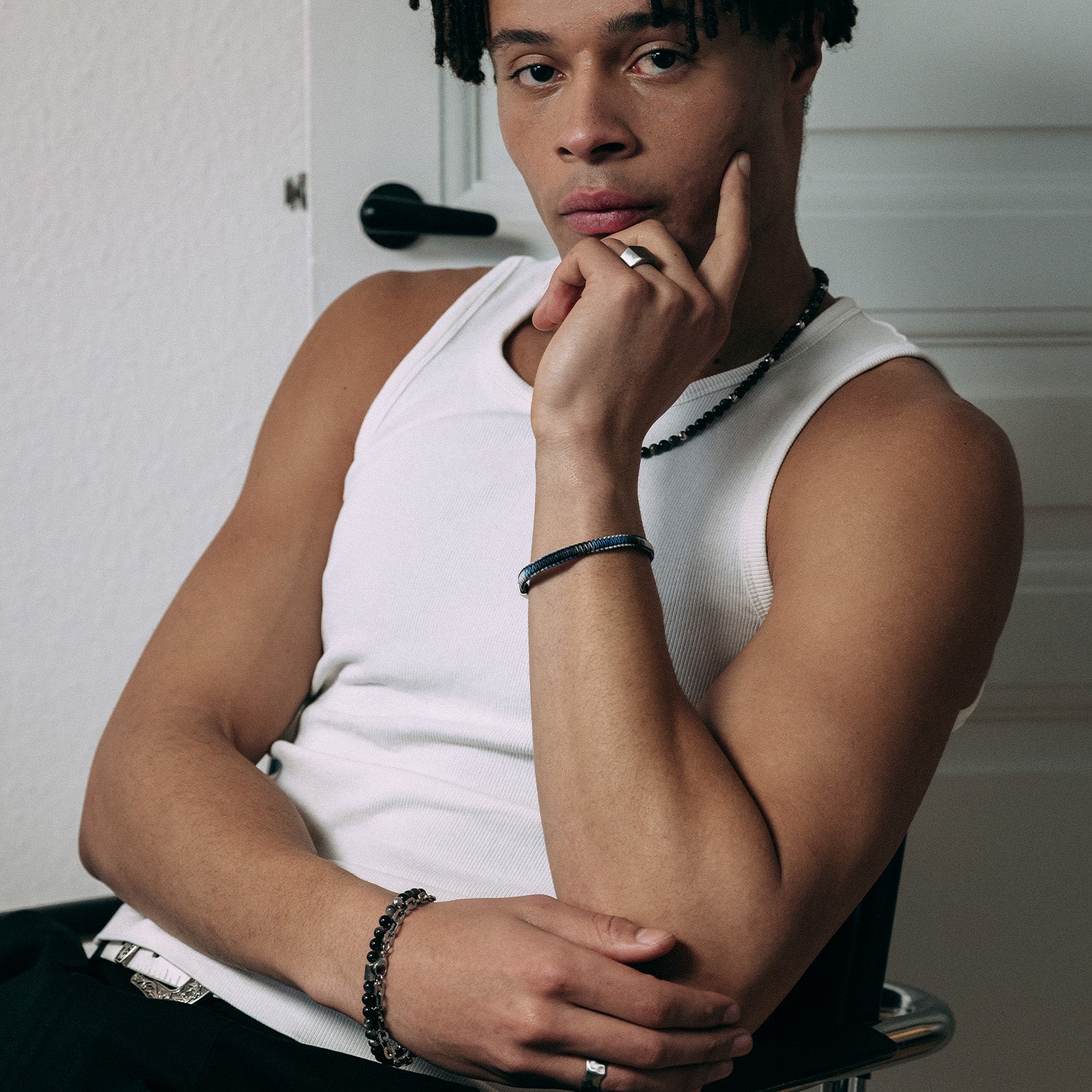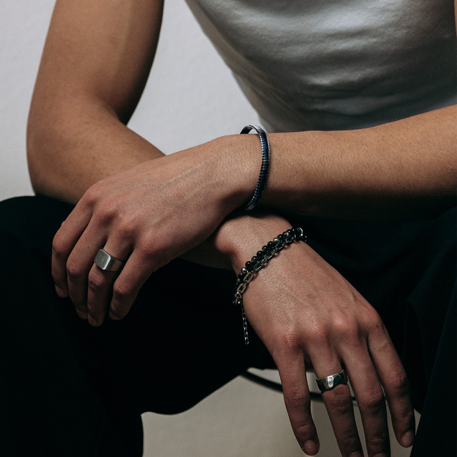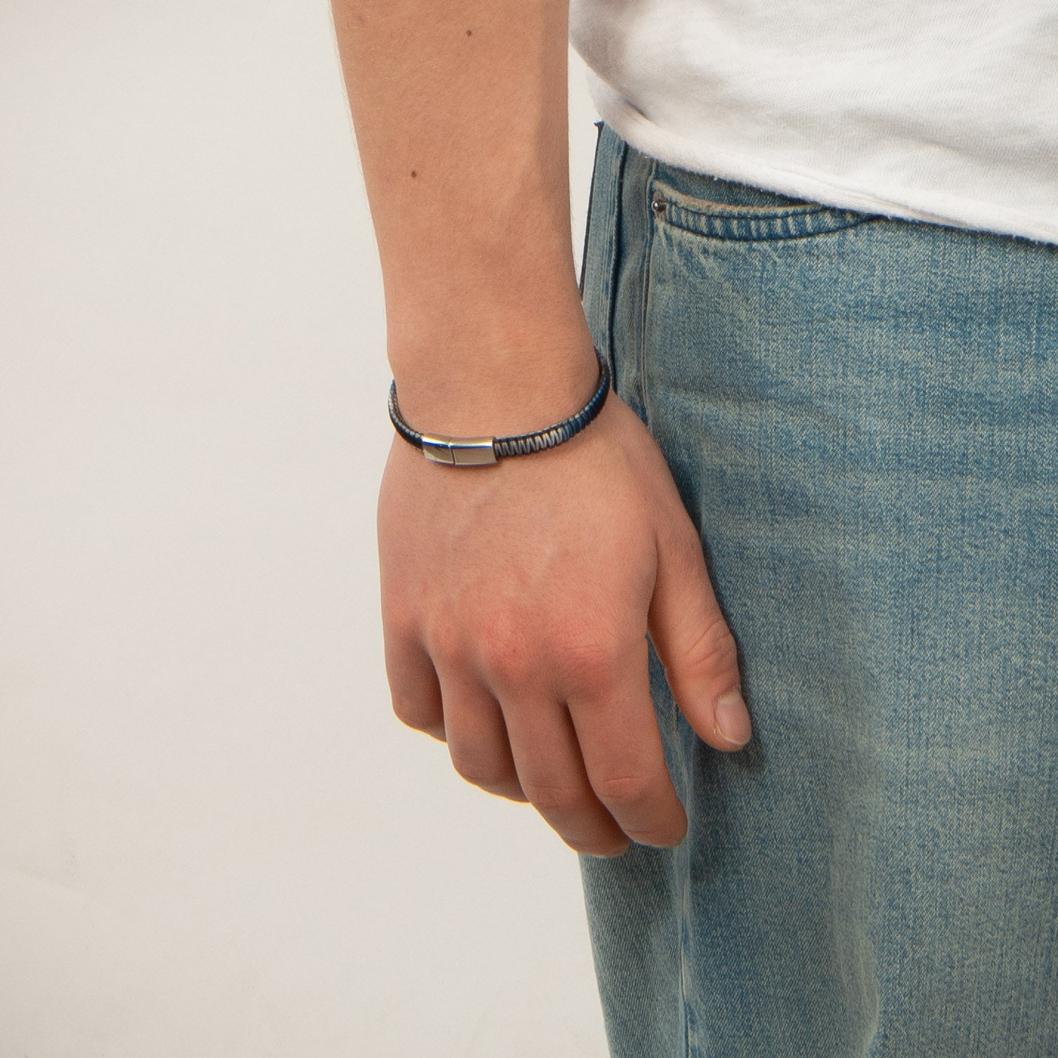 MAEND - Blåt armbånd, 20+1 cm/6,5 mm - Rustfrit stål