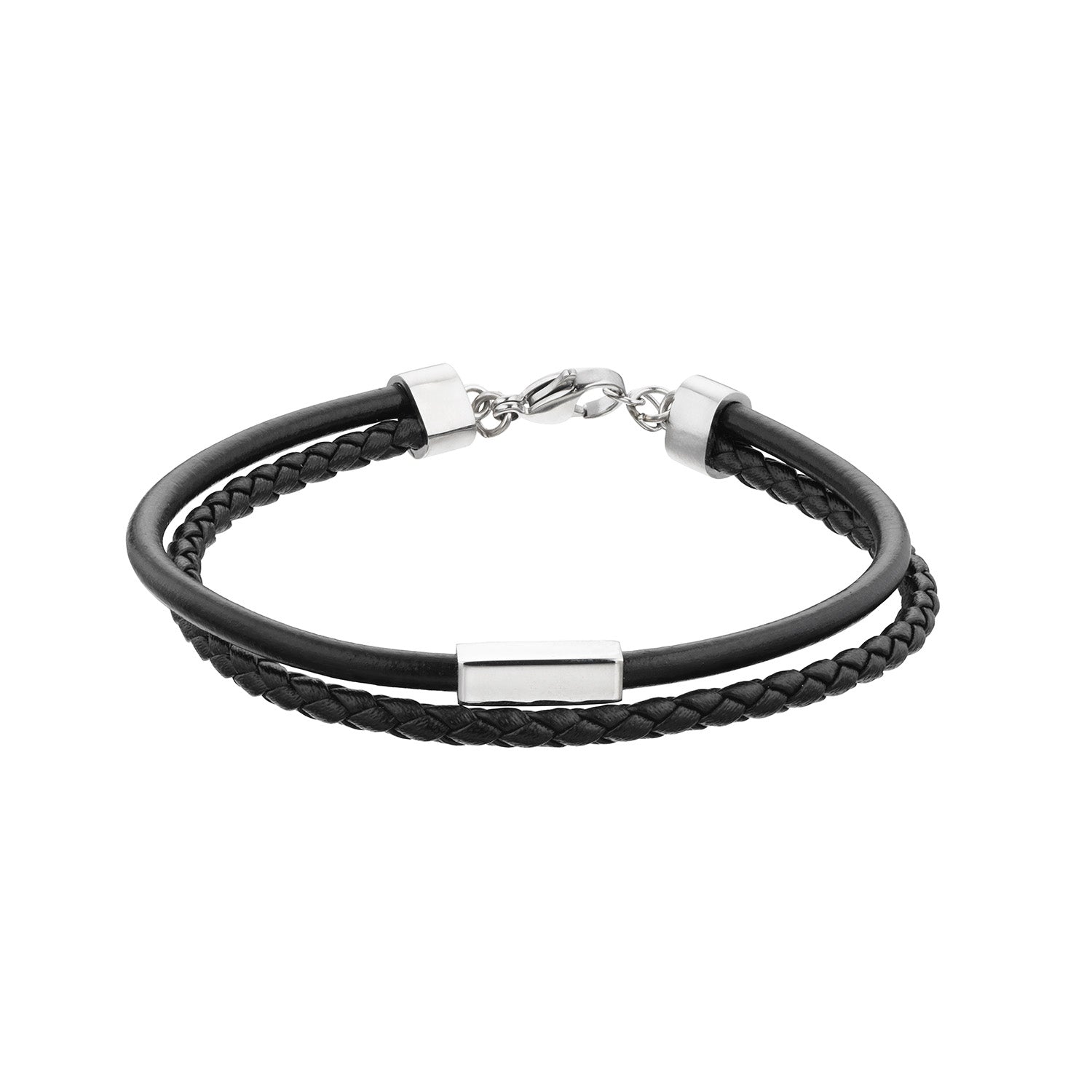 MAEND - Sort læderarmbånd, 19+2,5 cm - Rustfrit stål