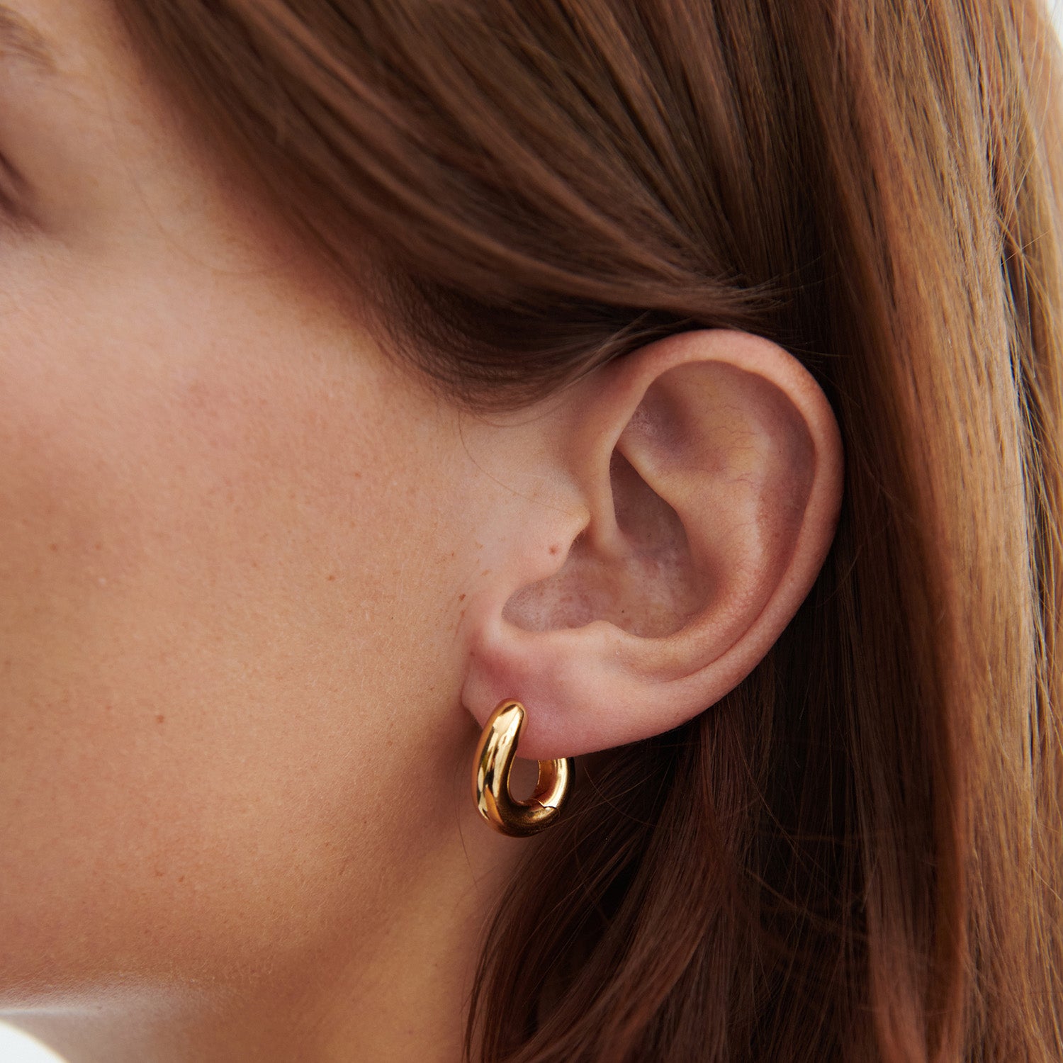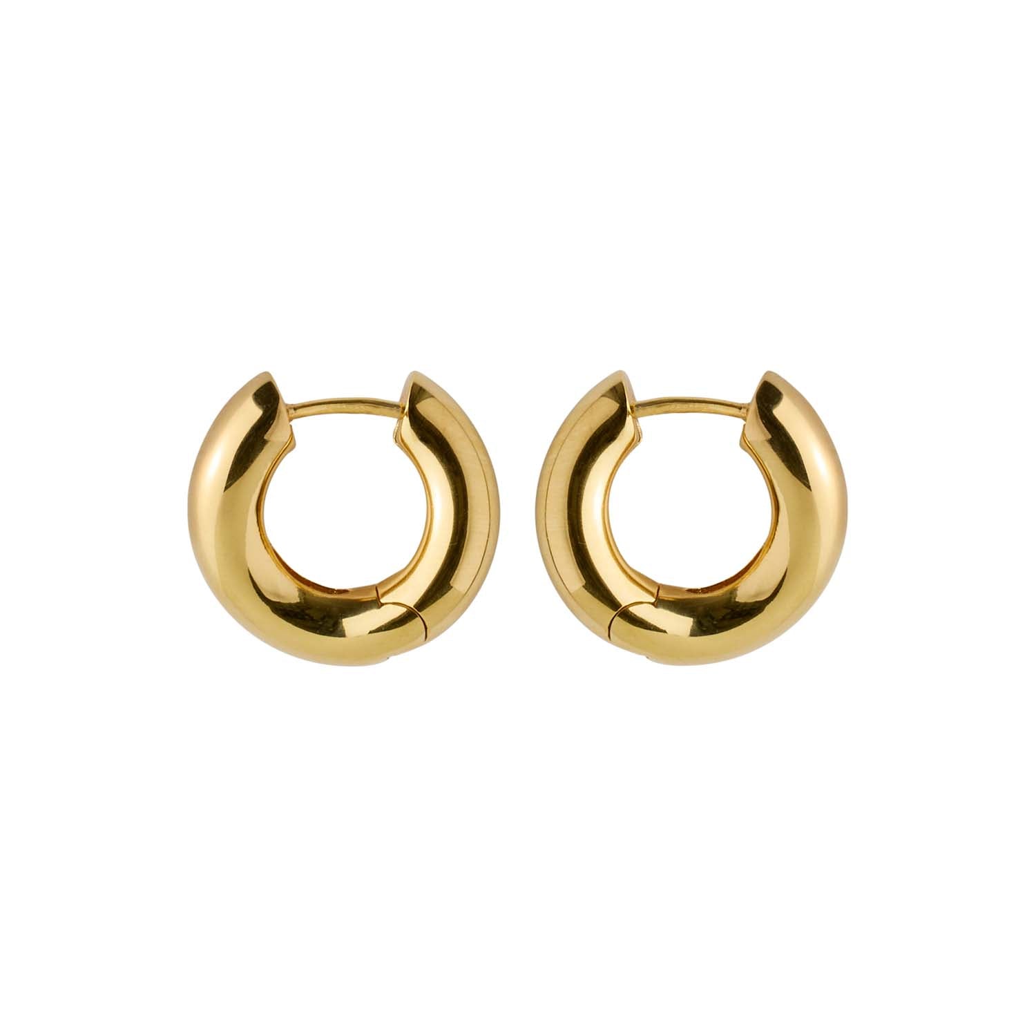 Disse øreringe har en smuk, glat overflade, der reflekterer lyset på en sofistikeret måde. Den forgyldte finish giver dem en varm glød, der fremhæver deres enkle, men elegante form. Øreringene er kompakte og sidder tæt til øret, hvilket gør dem ideelle til både daglig brug og særlige anledninger.