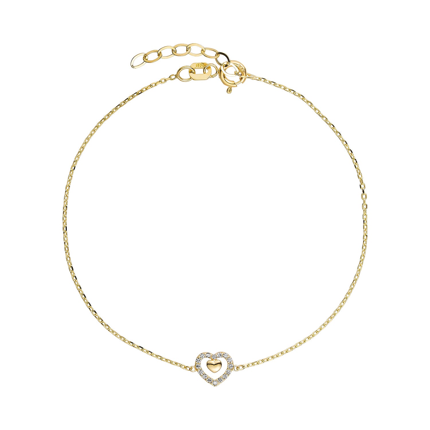 Vibholm GULD - Armbånd m. dobbelthjerte, zirkonia/16,5+2 cm - 8 kt. guld