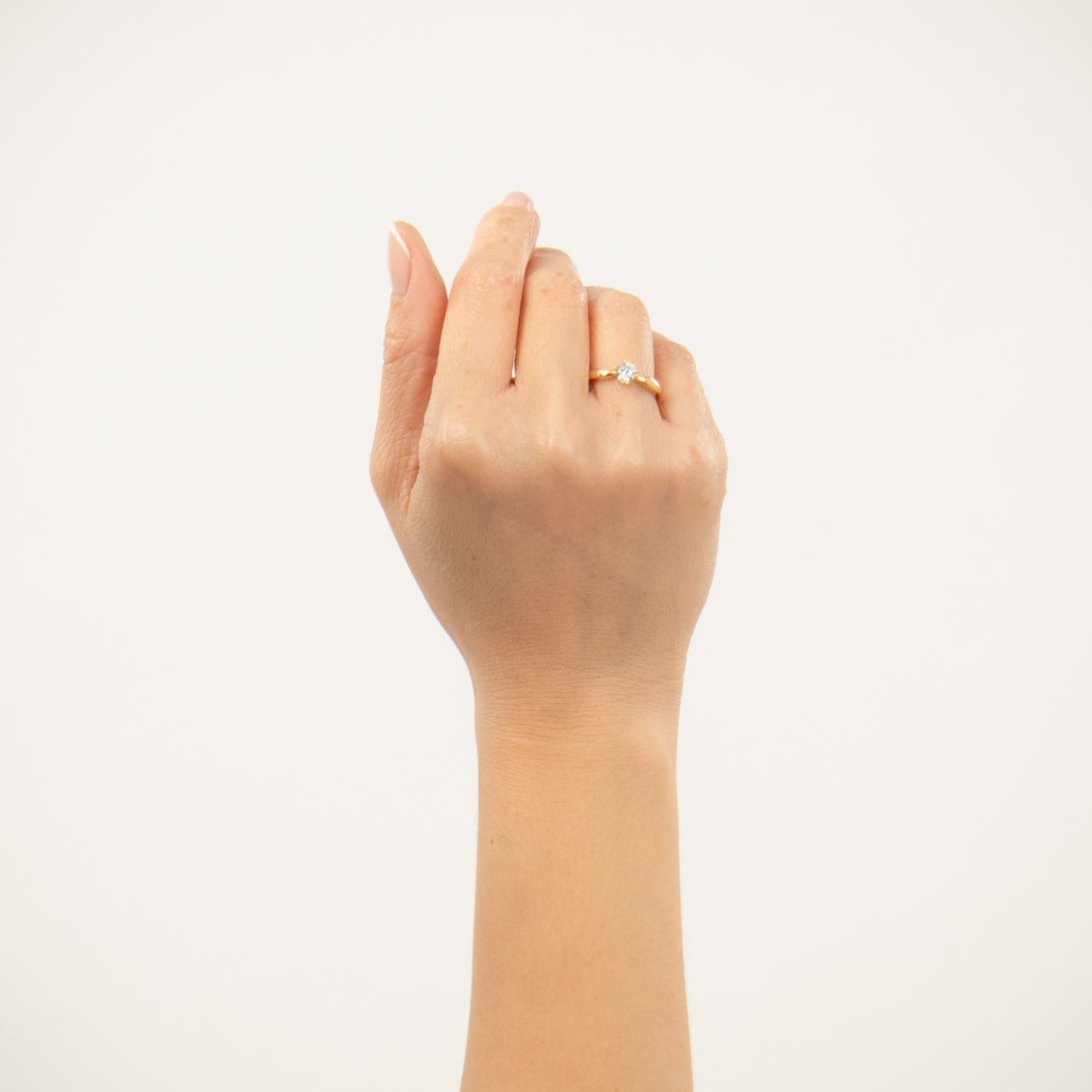 - Luksuriøs Udsøgthed: Guldets varme glød komplimenteres af zirkoniens funklende skær, hvilket skaber et blikfang på din finger.