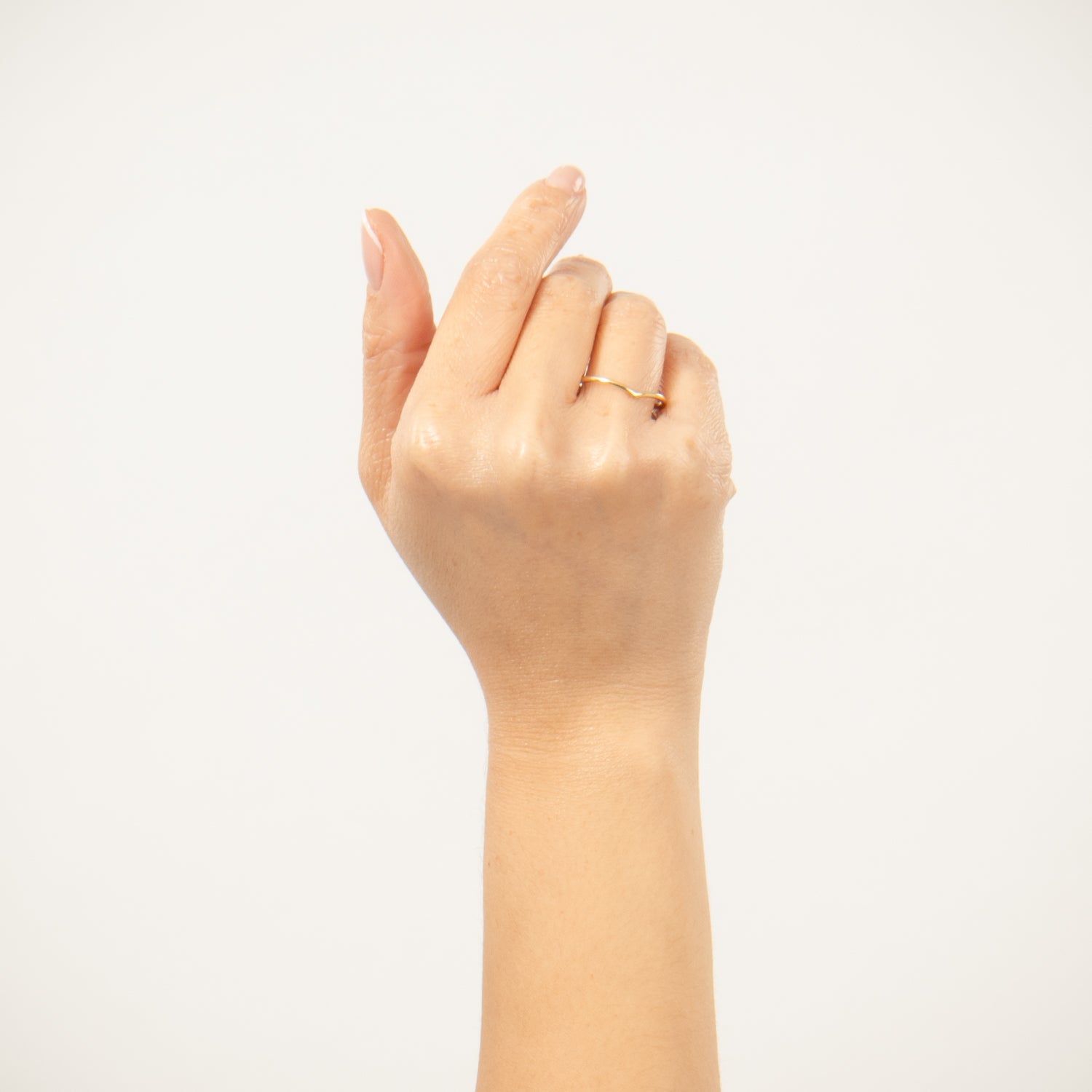 Denne V-ring fra Aveny NINE K er et udtryk for ren og skær finesse. Med sin gyldne farve og blanke overflade fanger den øjet og tilføjer et strejf af luksus til din stil. Den glatte tekstur og det skinnende guld fremhæver ringens enkle, men markante V-form, som smyger sig om fingeren med en naturlig elegance. Denne ring er ikke blot et smykke, men et symbol på de øjeblikke og mennesker, vi holder af.