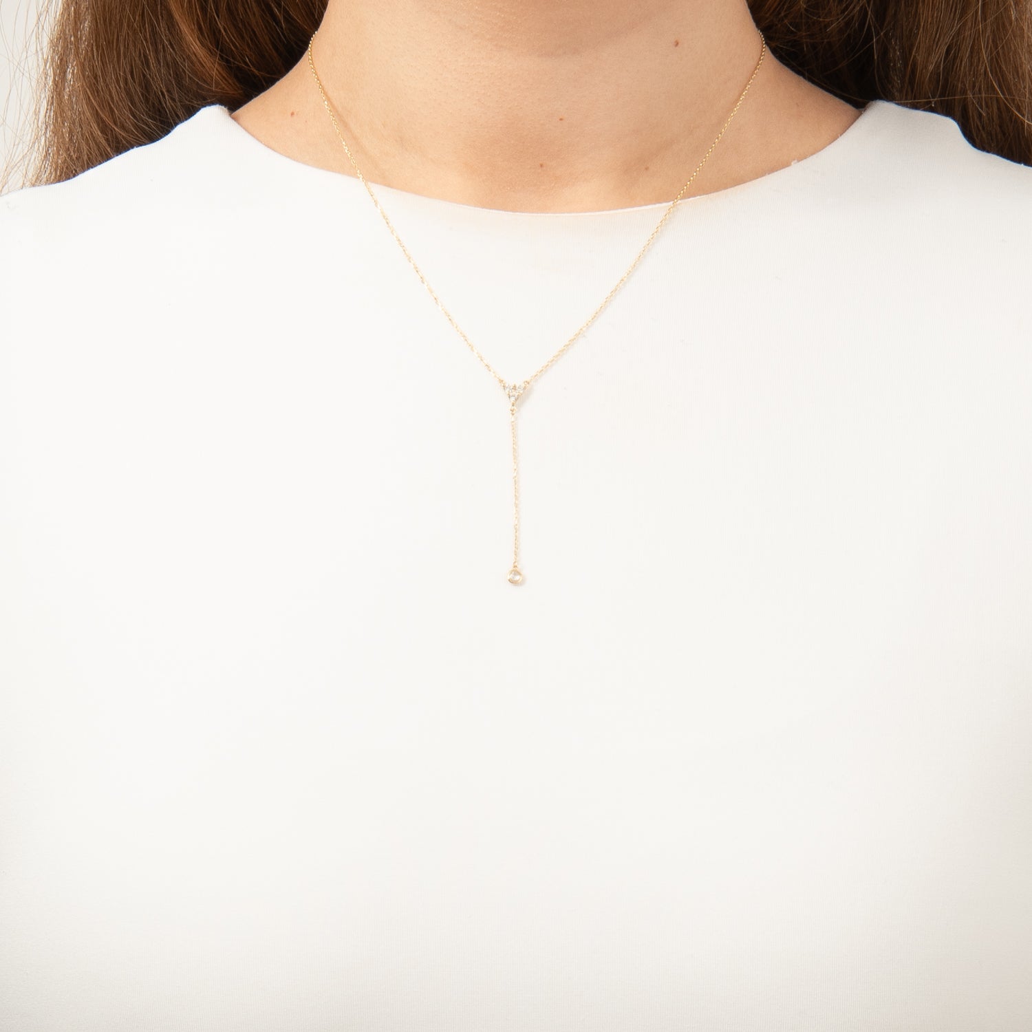 Vibholm GULD - Y-halskæde m. kugle og zirkonia, 42+3 cm - 8 kt. guld