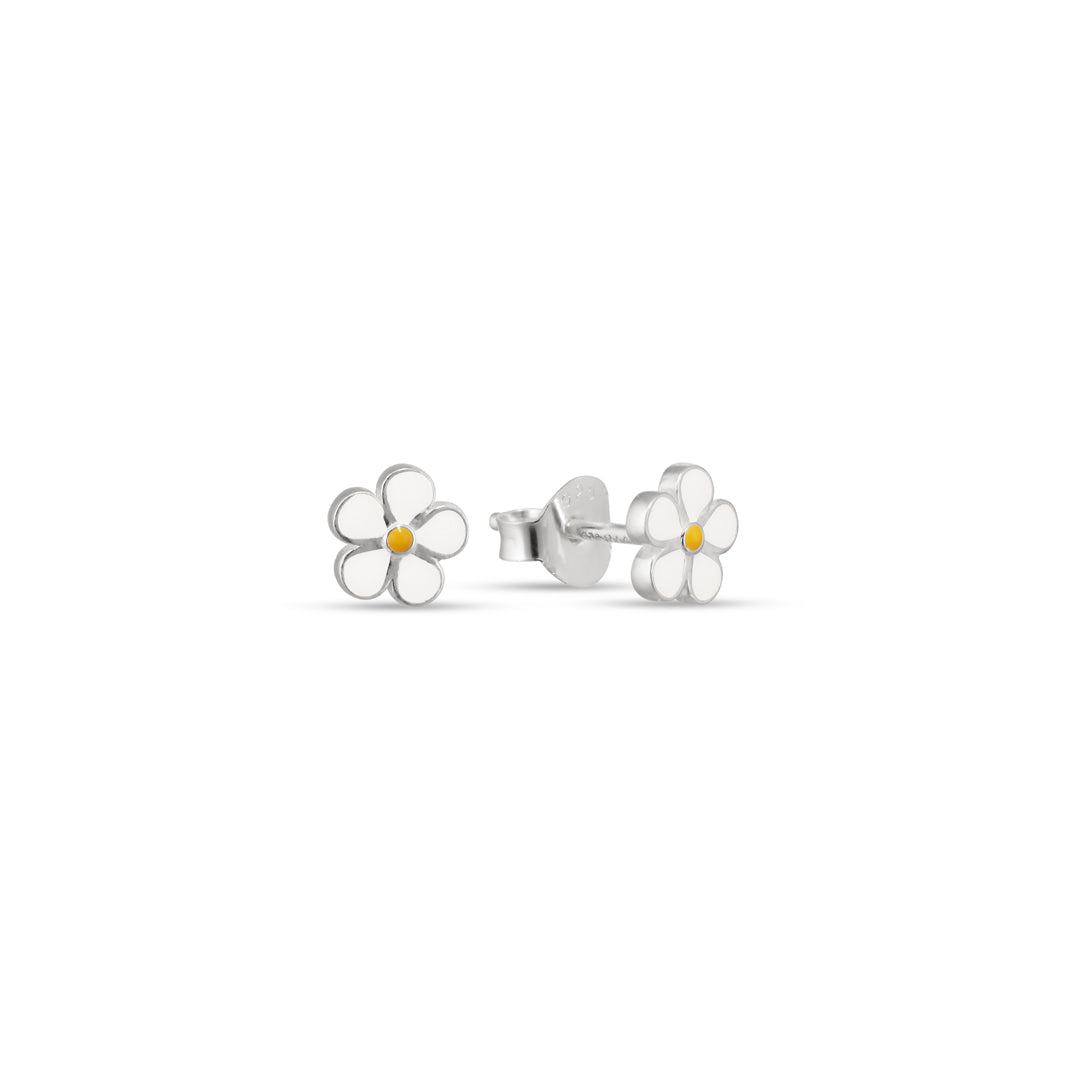 Vibholm KIDS - Ørestikker m. blomster, gul og hvid emalje - Sølv
