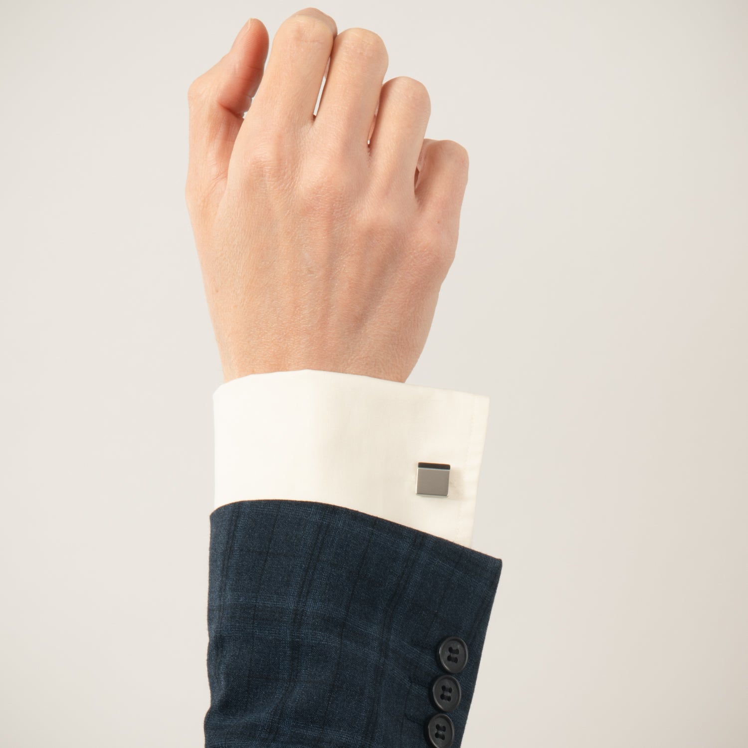 Disse manchetknapper måler 13 mm x 13 mm og har en sofistikeret sort IP-belægning, der giver dem en moderne og stilfuld finish. Den glatte overflade og de skarpe kanter skaber et minimalistisk udtryk, der er både tidløst og moderne. Den sorte farve står i smuk kontrast til det skinnende sølv, hvilket gør dem til et iøjnefaldende tilbehør.