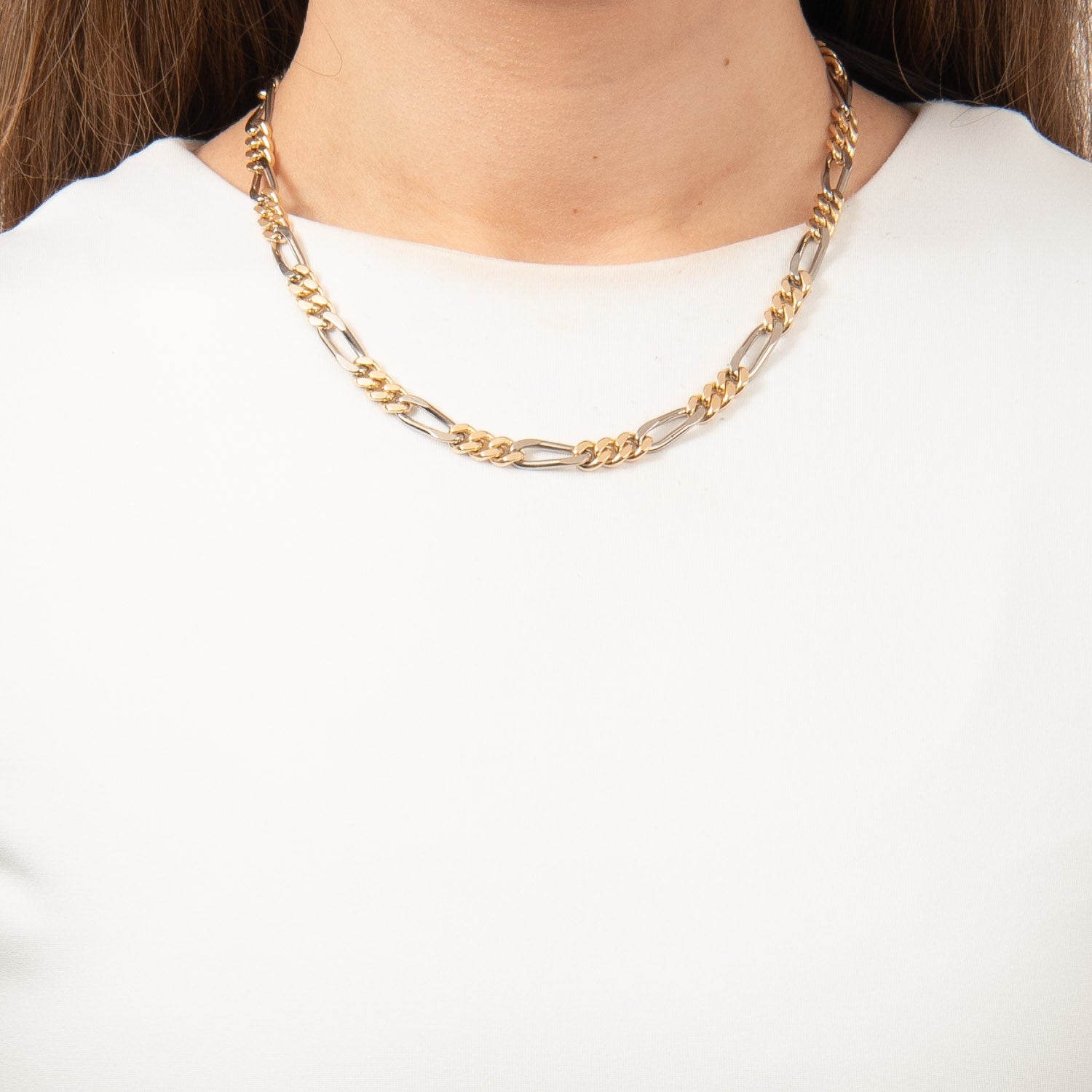 Klassisk design med et raffineret twist. Denne Figaro halskæde fra Vibholm ReGold er udført i 14 kt. rød- og hvidguld og måler 45 cm. De karakteristiske Figaro-led skaber et levende samspil mellem de to guldfarver og giver kæden et elegant fald med et tidløst og eksklusivt udtryk.