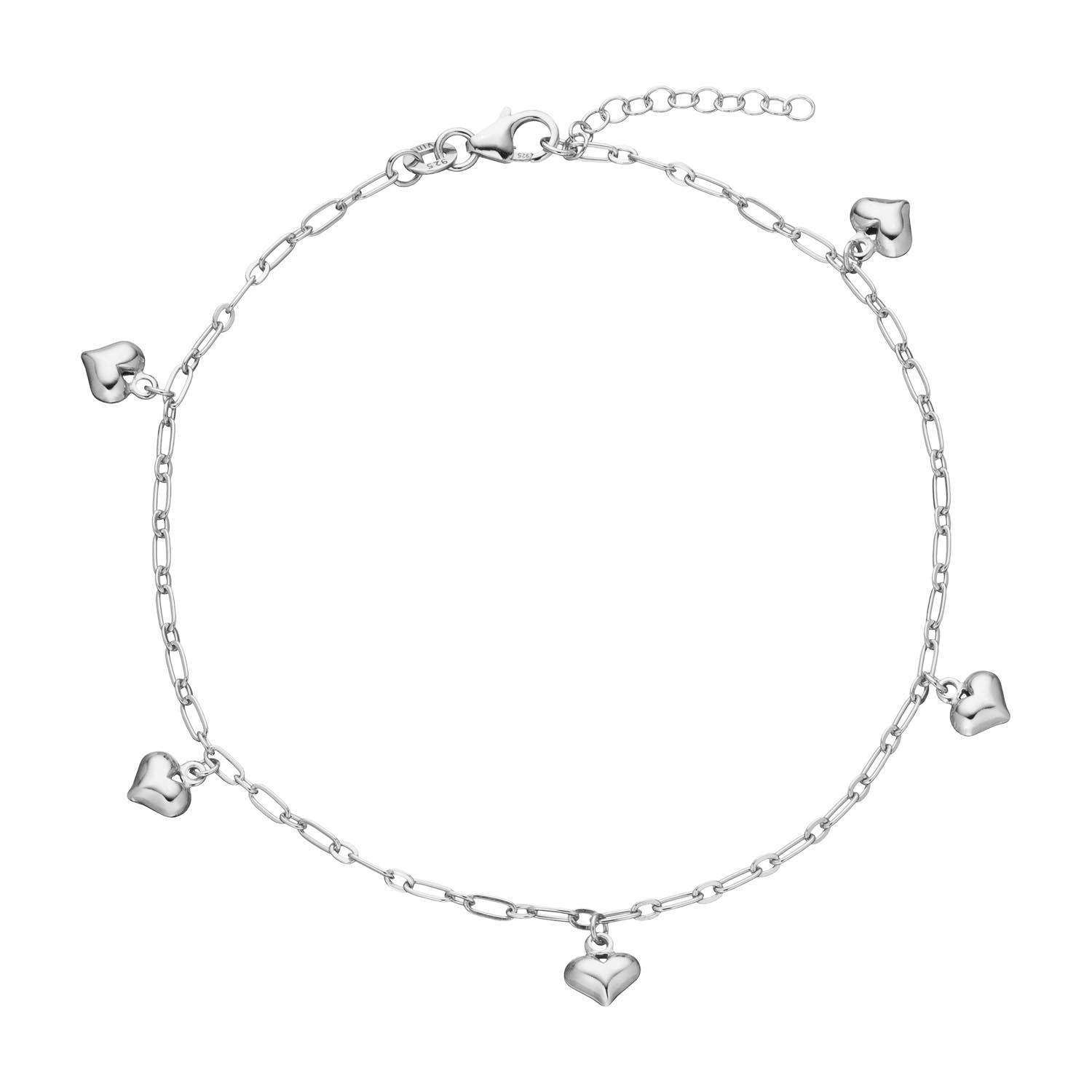Vibholm SØLV - Ankelkæde m. 5 hjerter, 24+2 cm - Sølv