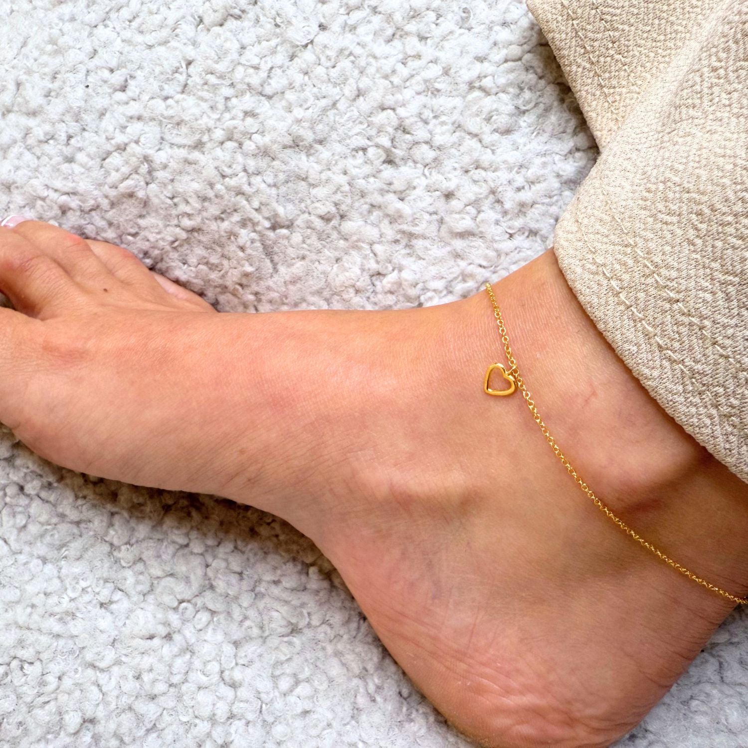 Oplev den subtile elegance med Vibholm SØLVs forgyldte ankelkæde. Denne smukke kæde er designet til at fremhæve din stil med et delikat åbent hjerte charm, der symboliserer kærlighed og skønhed.