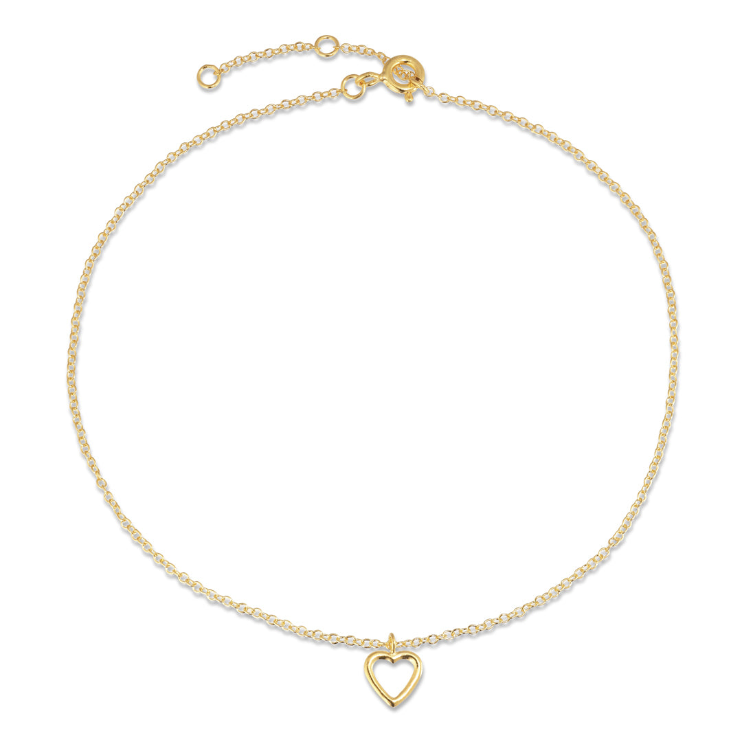 Vibholm SØLV - Ankelkæde m. åben hjerte charm, 23+3 cm - Forgyldt sølv