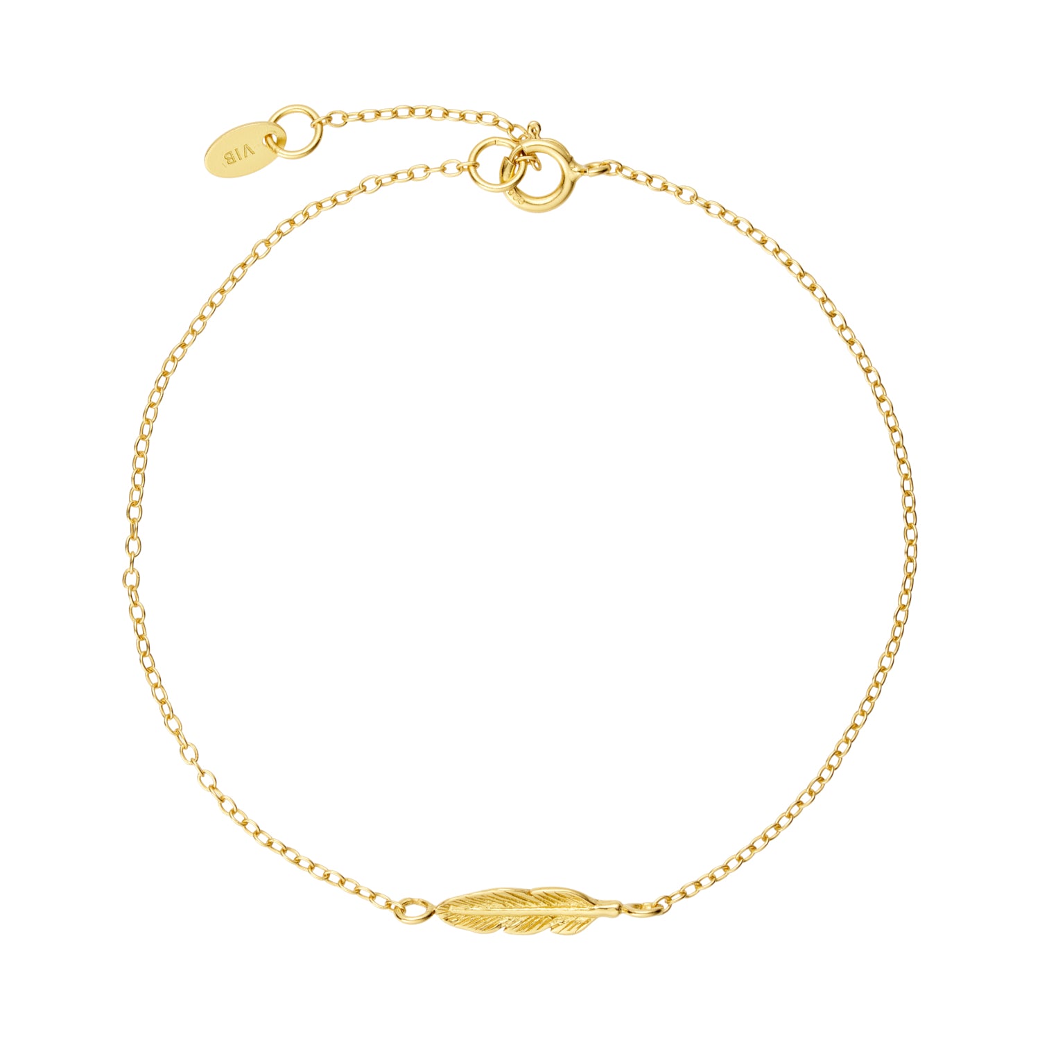 Armbåndet er fremstillet i forgyldt sølv og udstråler en varm gylden glød, der komplementerer enhver hudtone. Det delikate fjerdesign tilføjer en let og luftig følelse, der gør det til et ideelt tilbehør til både hverdag og fest.