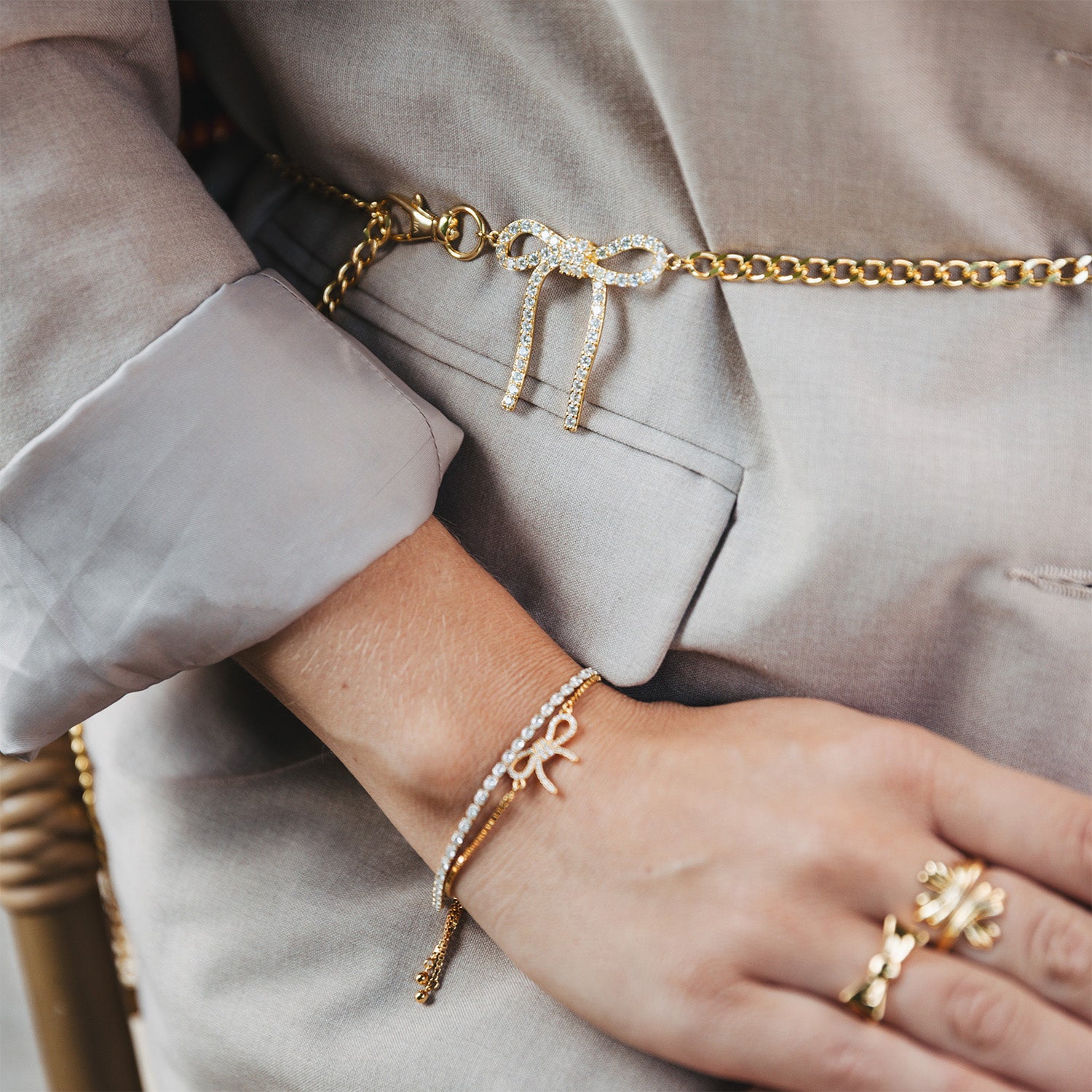 Vibholm X Julie Elgaard - Forever Bow mavekæde, 107 cm - Rhodineret messing