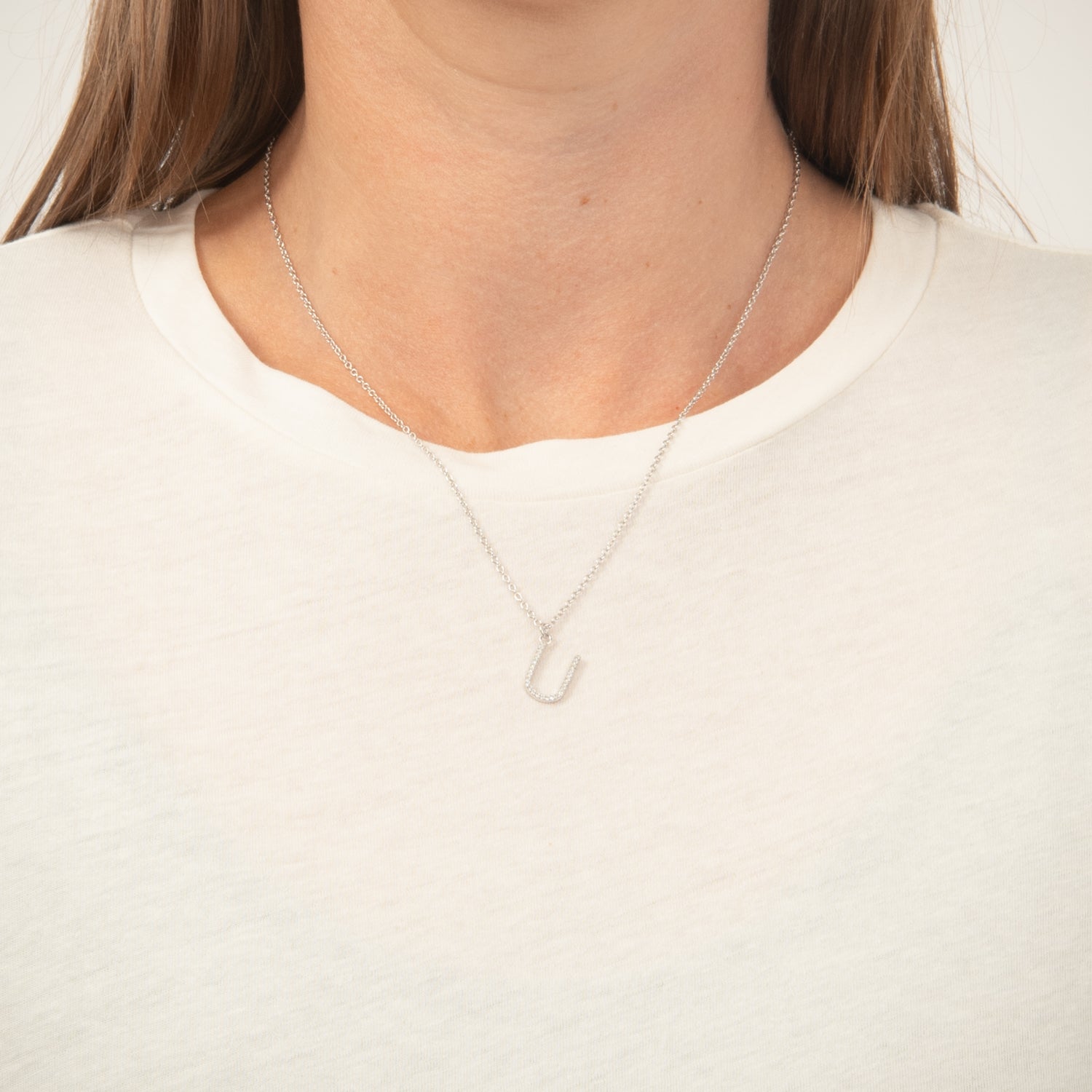 View Jewellery - Bogstavshalskæde, U - Rhodineret sølv