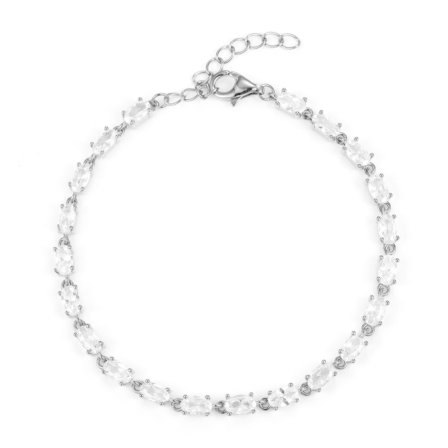 Armbåndet udstråler en tidløs elegance med sine klare zirkonia sten, der fanger lyset og skaber en strålende effekt. Den rhodinerede overflade sikrer en holdbar glans, der bevarer sin skønhed over tid. Med sin delikate kæde og subtile detaljer er dette armbånd en alsidig tilføjelse til enhver smykkesamling.
