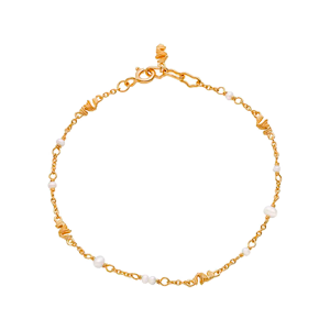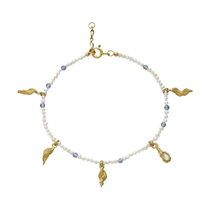 Et delikat kædearmbånd med små vedhæng og perledetaljer, inspireret af havets skatte og naturens poesi. Mero armbåndet har en fin, romantisk energi og kan styles alene eller sammen med flere smykker for et personligt udtryk.